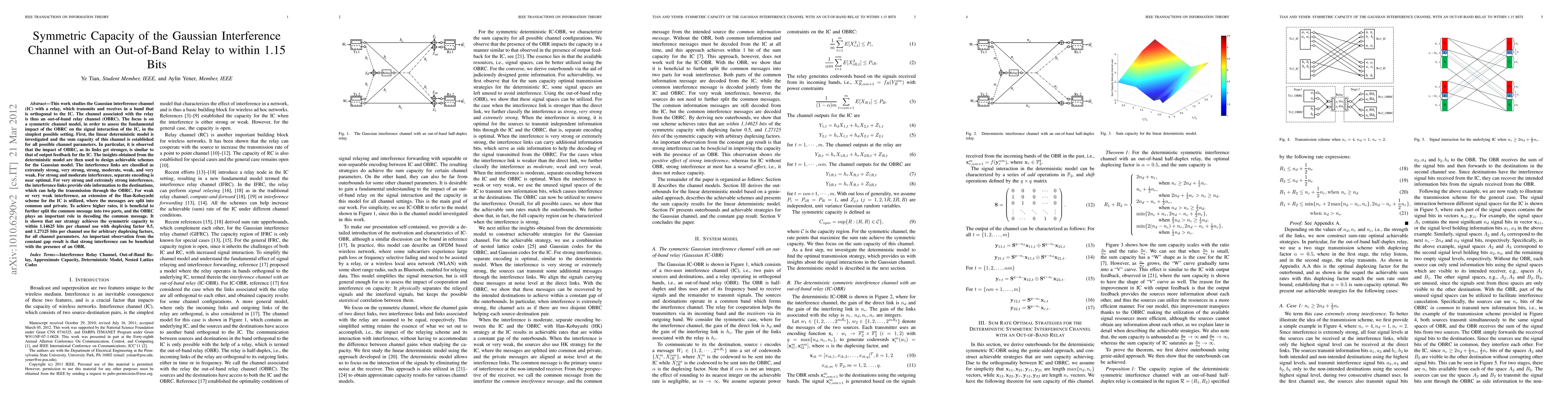 This research paper investigates the symmetric capacity of a Gaussian interference channel with an out-of-band relay, showing that strong interference can be beneficial with its presence, and achieving symmetric capacity within 1.15 bits per channel use.
