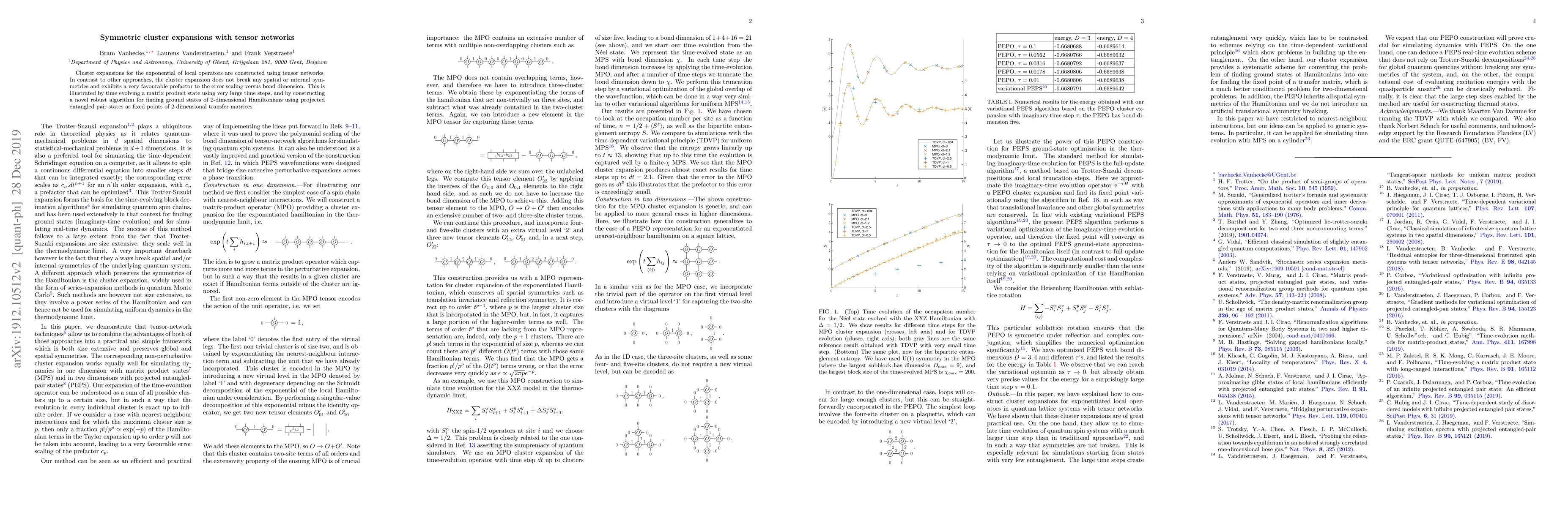 Researchers develop a method to construct cluster expansions for exponential of local operators using tensor networks, preserving symmetries and showing favorable error scaling. This enables robust ground state finding algorithms for 2D Hamiltonians.
