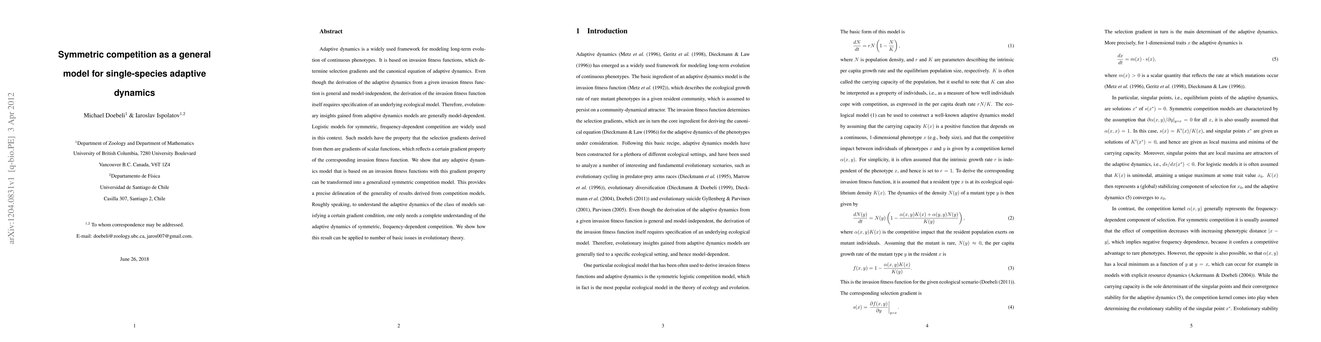 Adaptive dynamics is a widely used framework for modeling long-term evolution of continuous phenotypes. It is based on invasion fitness functions, which determine selection gradients and the canonical equation of adaptive dynamics. Even though the derivation of the adaptive dynamics from a given invasion fitness function is general and model-independent, the derivation of the invasion fitness function itself requires specification of an underlying ecological model. Therefore, evolutionary insights gained from adaptive dynamics models are generally model-dependent. Logistic models for symmetric, frequency-dependent competition are widely used in this context. Such models have the property that the selection gradients derived from them are gradients of scalar functions, which reflects a certain gradient property of the corresponding invasion fitness function. We show that any adaptive dynamics model that is based on an invasion fitness functions with this gradient property can be transformed into a generalized symmetric competition model. This provides a precise delineation of the generality of results derived from competition models. Roughly speaking, to understand the adaptive dynamics of the class of models satisfying a certain gradient condition, one only needs a complete understanding of the adaptive dynamics of symmetric, frequency-dependent competition. We show how this result can be applied to number of basic issues in evolutionary theory.
