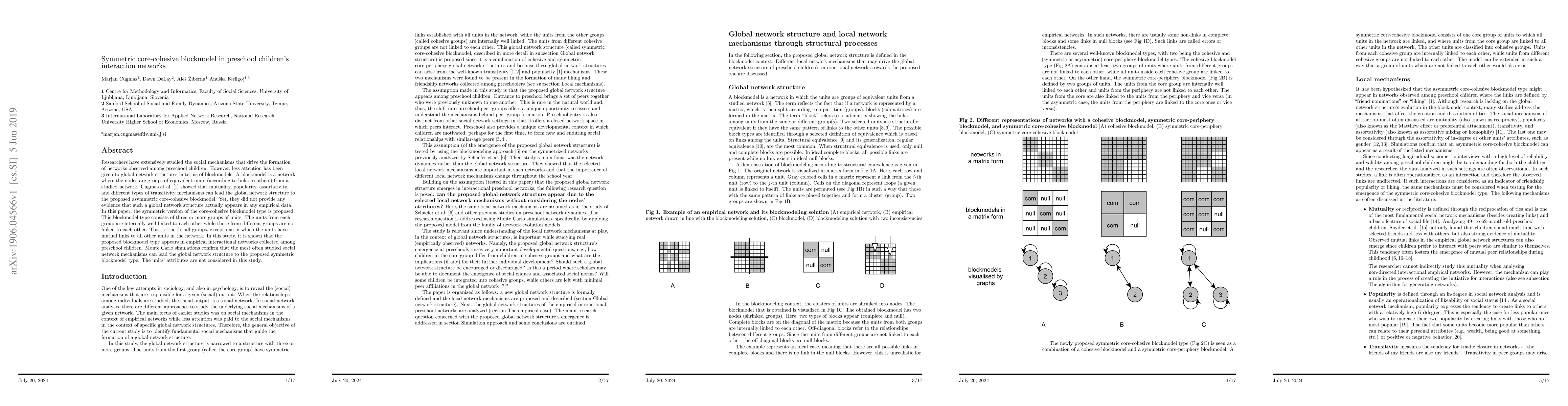 Researchers found that preschool children's interaction networks often follow a symmetric core-cohesive blockmodel with three or more groups of internally linked units, except one group connected to all others.