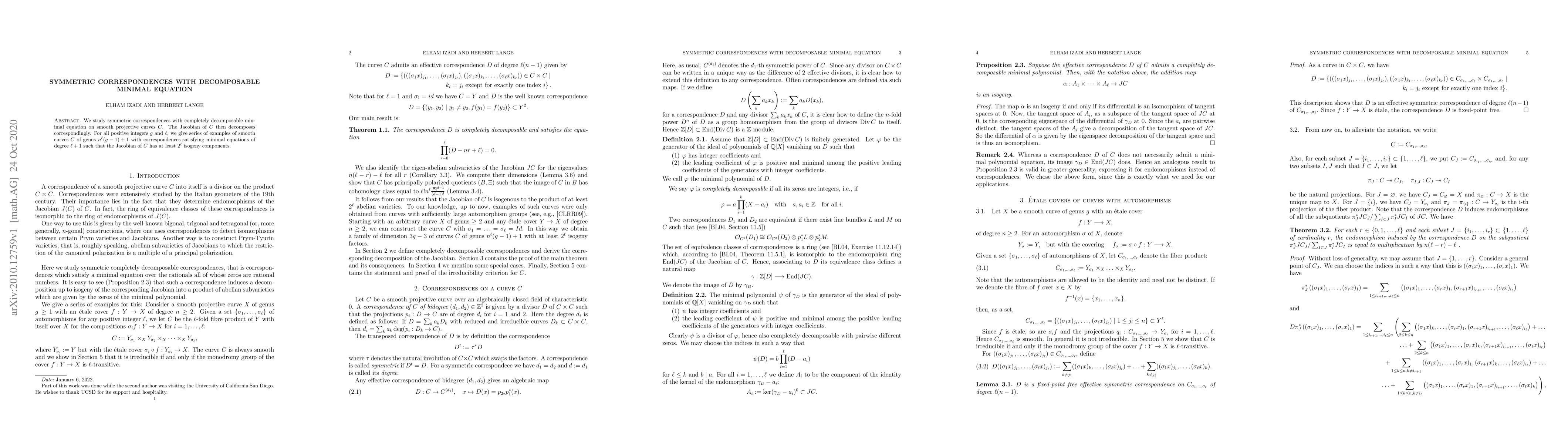 We study symmetric correspondences with completely decomposable minimal equation on smooth projective curves $C$. The Jacobian of $C$ then decomposes correspondingly. For all positive integers $g$ and $\ell$, we give series of examples of smooth curves $C$ of genus $n^\ell (g-1) +1$ with correspondences satisfying minimal equations of degree $\ell+1$ such that the Jacobian of $C$ has at least $2^\ell$ isogeny components.