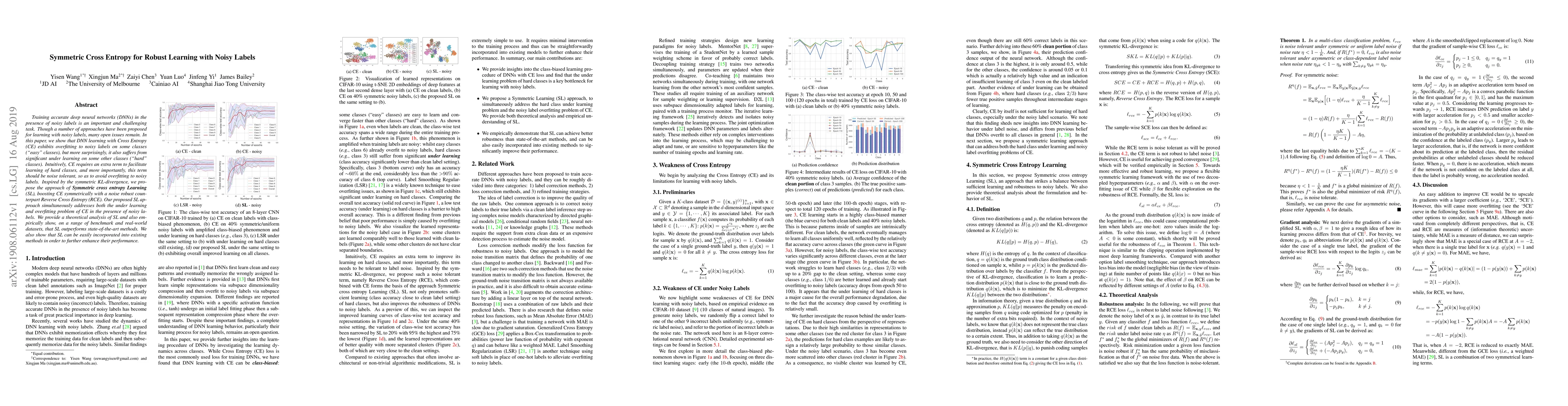 A new approach called Symmetric Cross Entropy Learning (SL) is proposed to improve the performance of deep neural networks when using noisy labels, addressing both overfitting and under learning issues.