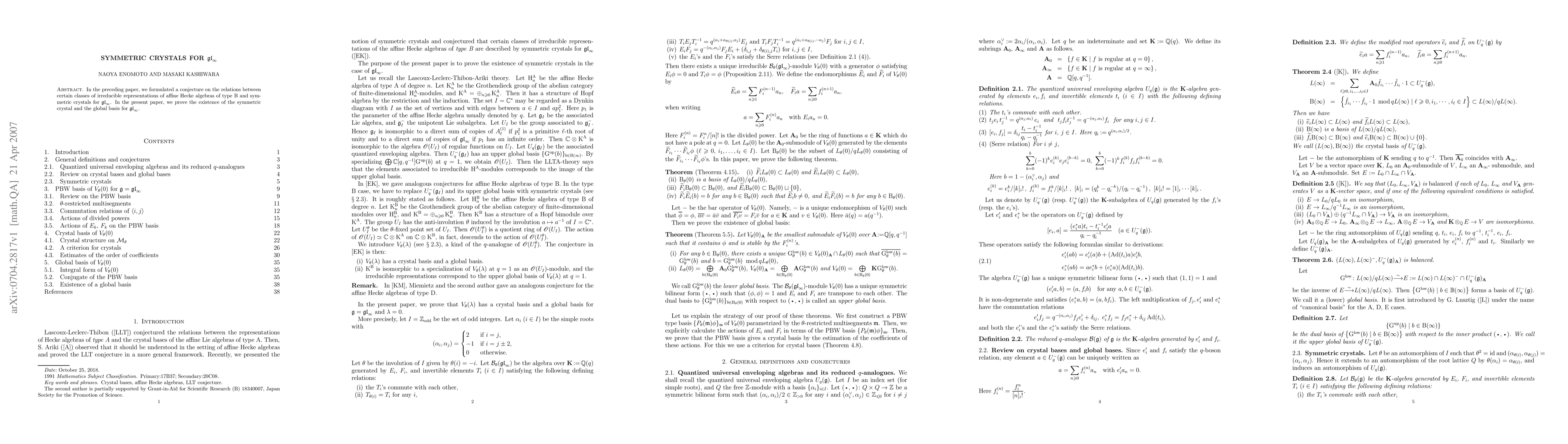 In the preceding paper, we formulated a conjecture on the relations between certain classes of irreducible representations of affine Hecke algebras of type B and symmetric crystals for $\gl_\infty$. In the present paper, we prove the existence of the symmetric crystal and the global basis for $\gl_\infty$.