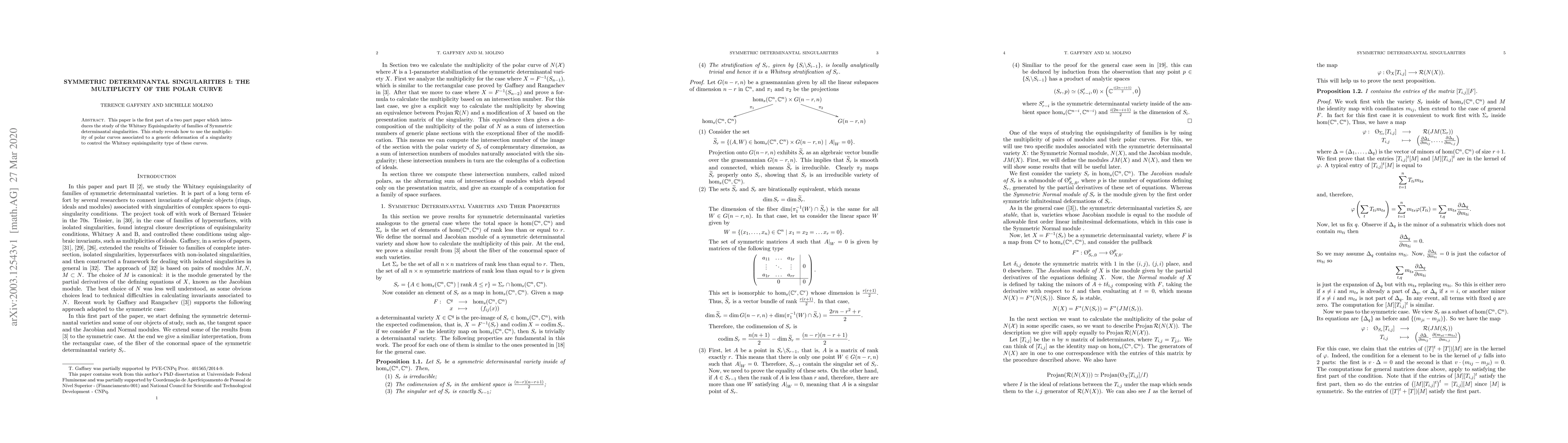 This paper is the first part of a two part paper which introduces the study of the Whitney Equisingularity of families of Symmetric determinantal singularities. This study reveals how to use the multiplicity of polar curves associated to a generic deformation of a singularity to control the Whitney equisingularity type of these curves.