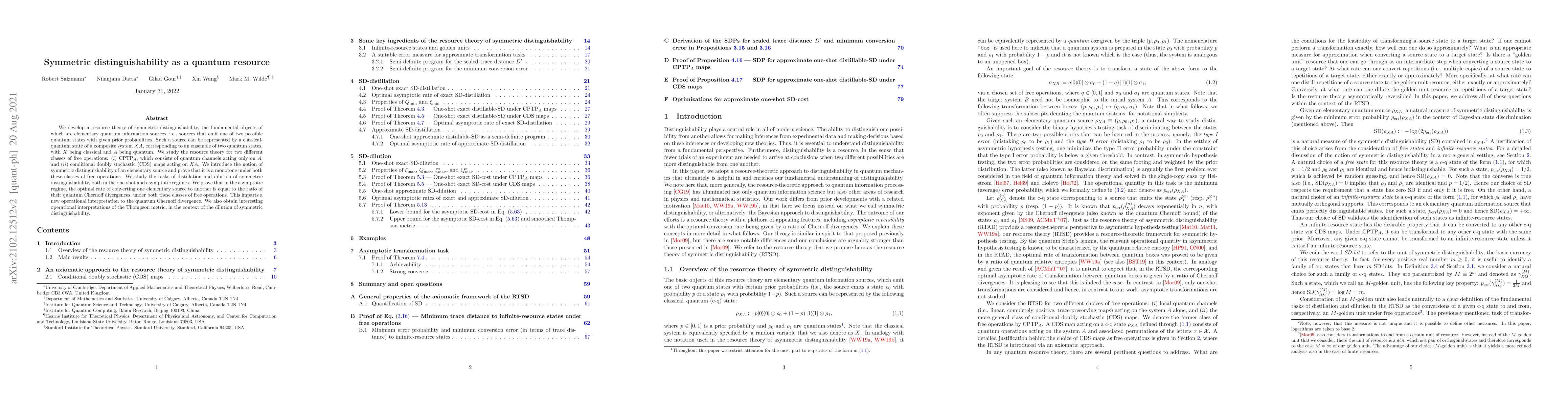 This paper develops a resource theory of symmetric distinguishability, focusing on quantum sources emitting two quantum states. It proves that symmetric distinguishability is a monotone under specific operations and provides operational interpretations for the quantum Chernoff divergence and Thompson metric in conversion and dilution tasks.