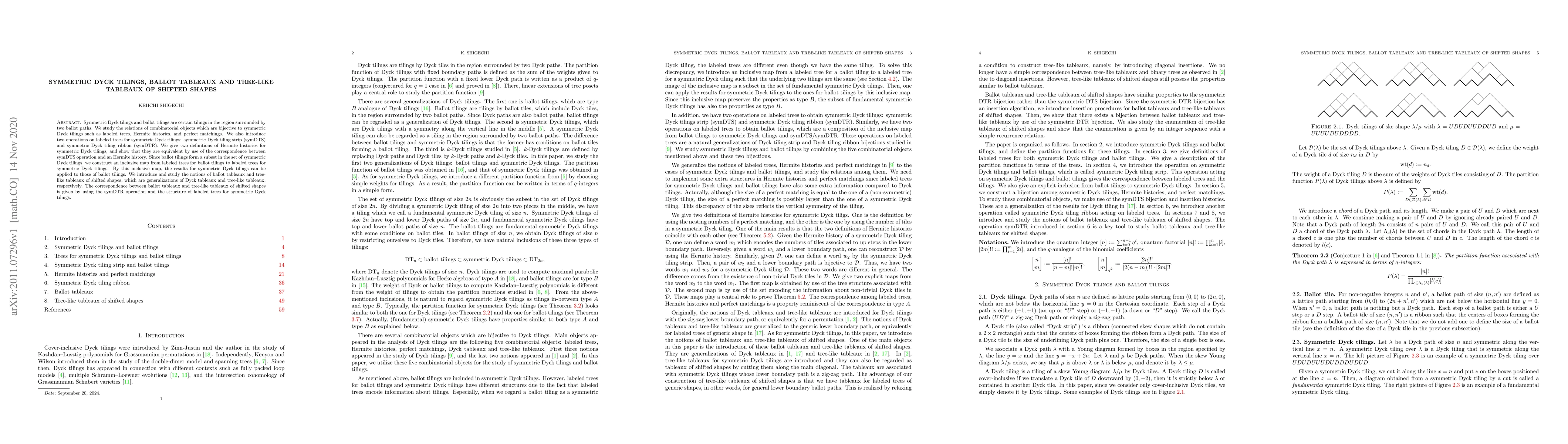 This paper explores the combinatorial structures of symmetric Dyck tilings and ballot tilings, establishing connections between them and labeled trees. It introduces operations and definitions for symmetric Dyck tilings and demonstrates their equivalence, while also mapping results from symmetric Dyck tilings to ballot tilings. Additionally, it investigates ballot tableaux and tree-like tableaux of shifted shapes, providing a correspondence using the symDTR operation and labeled trees.