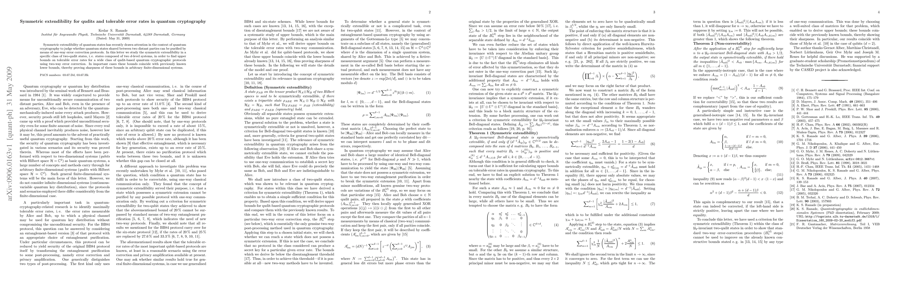 This paper investigates the symmetric extendibility of two-qudit states to determine upper bounds on tolerable error rates for qudit-based quantum cryptographic protocols. It demonstrates that these bounds match previously known lower bounds, proving their sharpness in finite-dimensional systems.