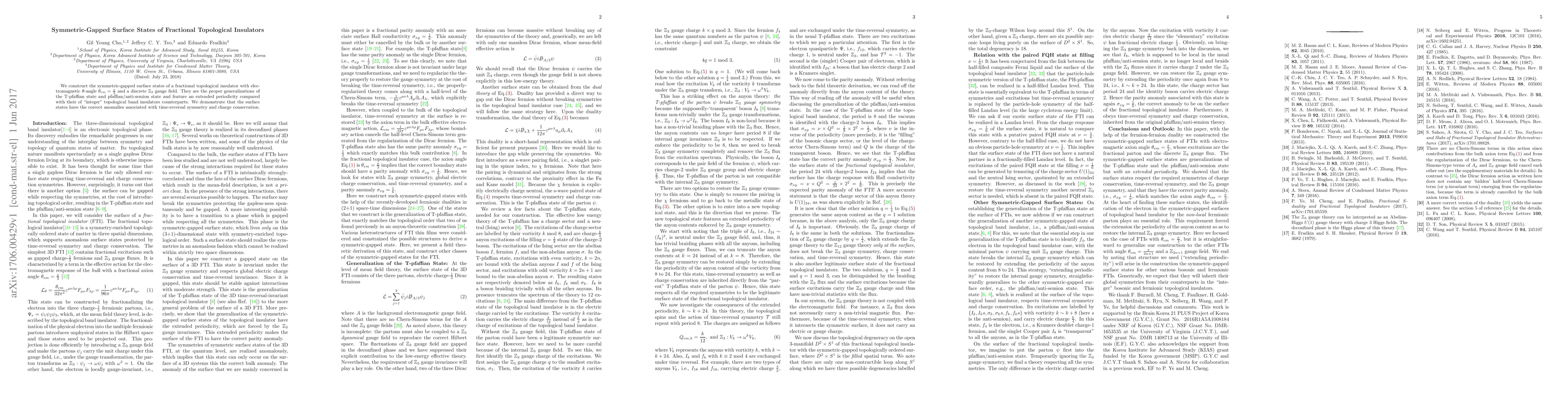 This paper constructs symmetric-gapped surface states for a fractional topological insulator with a $\theta_{em} = \frac{\pi}{3}$ electromagnetic angle and a $\mathbb{Z}_3$ gauge field. These states generalize the T-pfaffian and pfaffian/anti-semion states, exhibiting extended periodicity and correct anomalies for time-reversal symmetry and charge conservation.