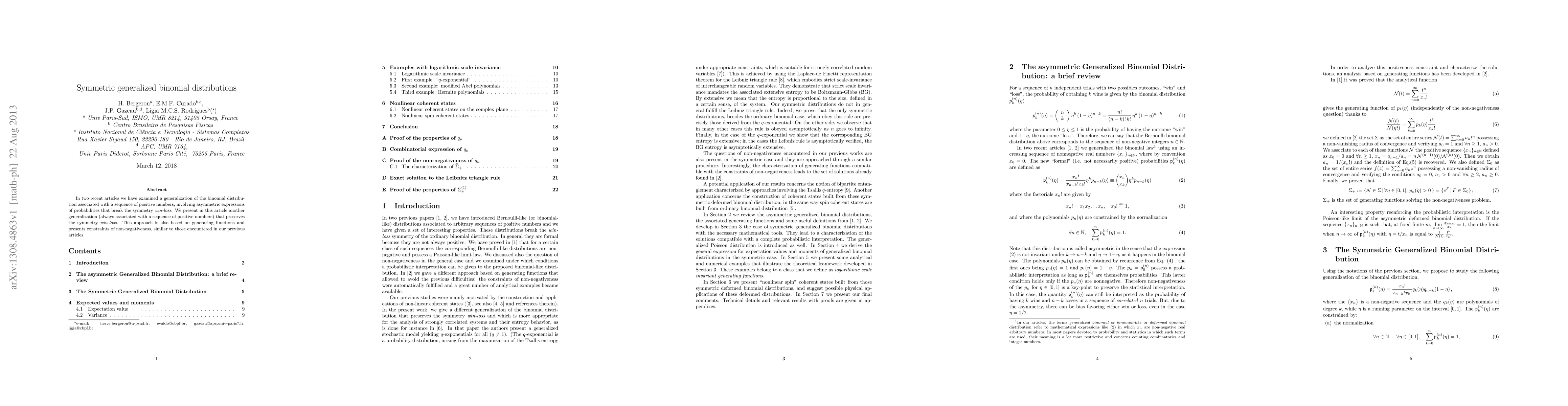 Researchers generalize binomial distribution to preserve symmetry win-loss, presenting constraints similar to previous asymmetric distributions, and applying generating functions to analyze the new model.