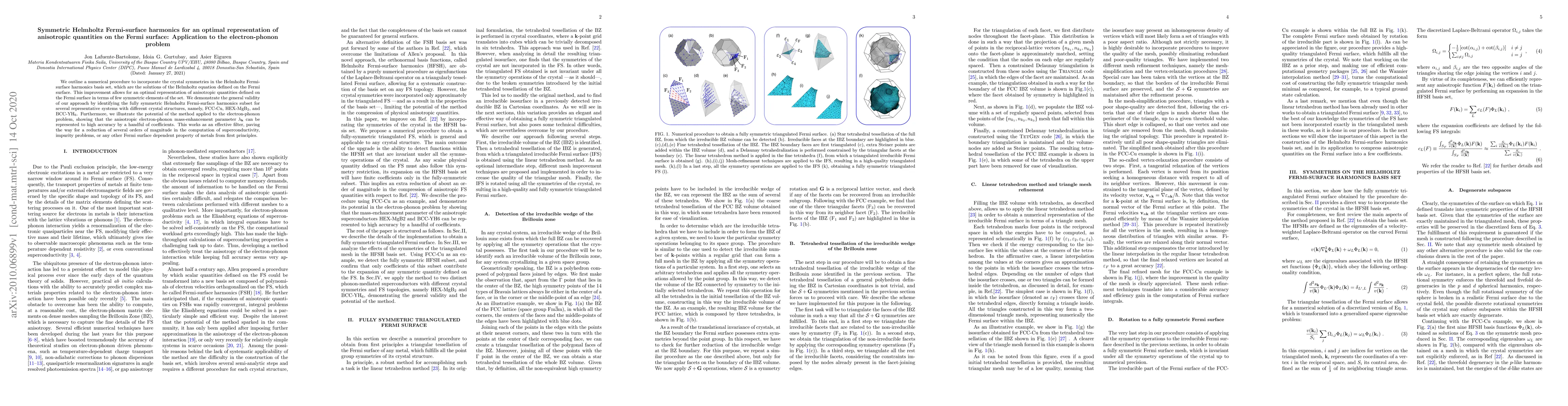 This paper introduces a numerical method to incorporate crystal symmetries into Helmholtz Fermi-surface harmonics, optimizing the representation of anisotropic quantities on the Fermi surface. The approach is validated for various crystal structures and demonstrated to significantly reduce computational effort in the electron-phonon problem for superconductivity studies.