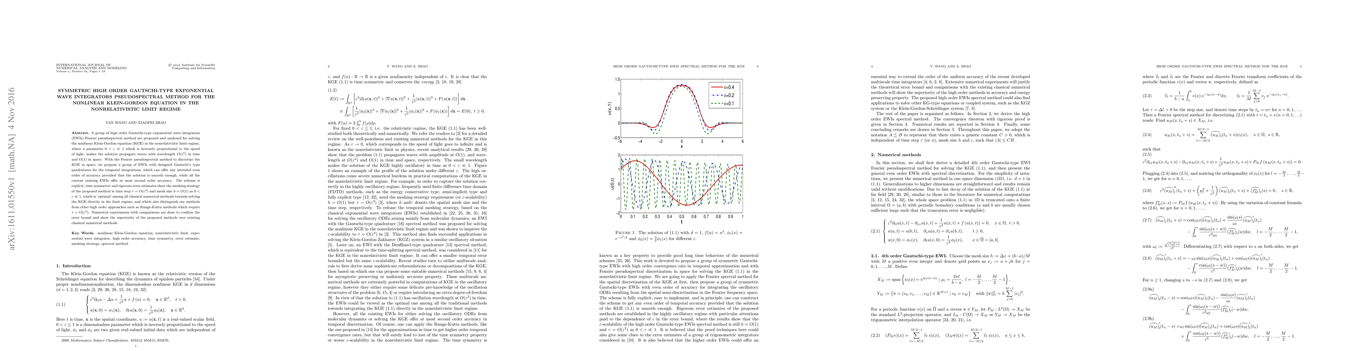This paper introduces high-order Gautschi-type exponential wave integrators combined with a Fourier pseudospectral method for solving the nonlinear Klein-Gordon equation in its nonrelativistic limit regime. These new methods offer superior accuracy, explicit time symmetry, and optimal meshing strategies, outperforming classical numerical methods in this specific regime.