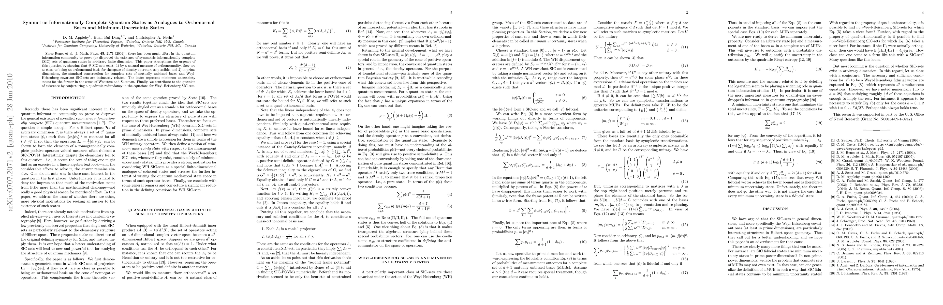 Since Renes et al. [J. Math. Phys. 45, 2171 (2004)], there has been much effort in the quantum information community to prove (or disprove) the existence of symmetric informationally complete (SIC) sets of quantum states in arbitrary finite dimension. This paper strengthens the urgency of this question by showing that if SIC-sets exist: 1) by a natural measure of orthonormality, they are as close to being an orthonormal basis for the space of density operators as possible, and 2) in prime dimensions, the standard construction for complete sets of mutually unbiased bases and Weyl-Heisenberg covariant SIC-sets are intimately related: The latter represent minimum uncertainty states for the former in the sense of Wootters and Sussman. Finally, we contribute to the question of existence by conjecturing a quadratic redundancy in the equations for Weyl-Heisenberg SIC-sets.