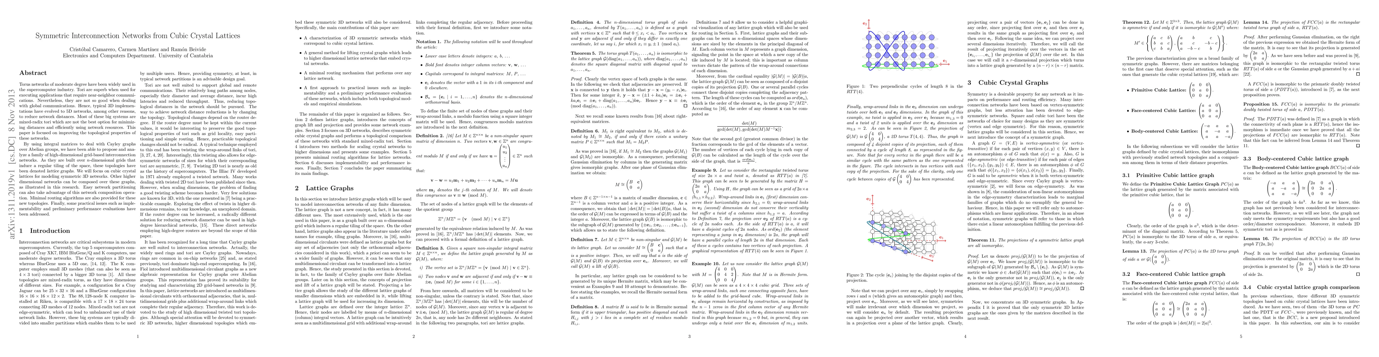Torus networks of moderate degree have been widely used in the supercomputer industry. Tori are superb when used for executing applications that require near-neighbor communications. Nevertheless, they are not so good when dealing with global communications. Hence, typical 3D implementations have evolved to 5D networks, among other reasons, to reduce network distances. Most of these big systems are mixed-radix tori which are not the best option for minimizing distances and efficiently using network resources. This paper is focused on improving the topological properties of these networks. By using integral matrices to deal with Cayley graphs over Abelian groups, we have been able to propose and analyze a family of high-dimensional grid-based interconnection networks. As they are built over $n$-dimensional grids that induce a regular tiling of the space, these topologies have been denoted \textsl{lattice graphs}. We will focus on cubic crystal lattices for modeling symmetric 3D networks. Other higher dimensional networks can be composed over these graphs, as illustrated in this research. Easy network partitioning can also take advantage of this network composition operation. Minimal routing algorithms are also provided for these new topologies. Finally, some practical issues such as implementability and preliminary performance evaluations have been addressed.