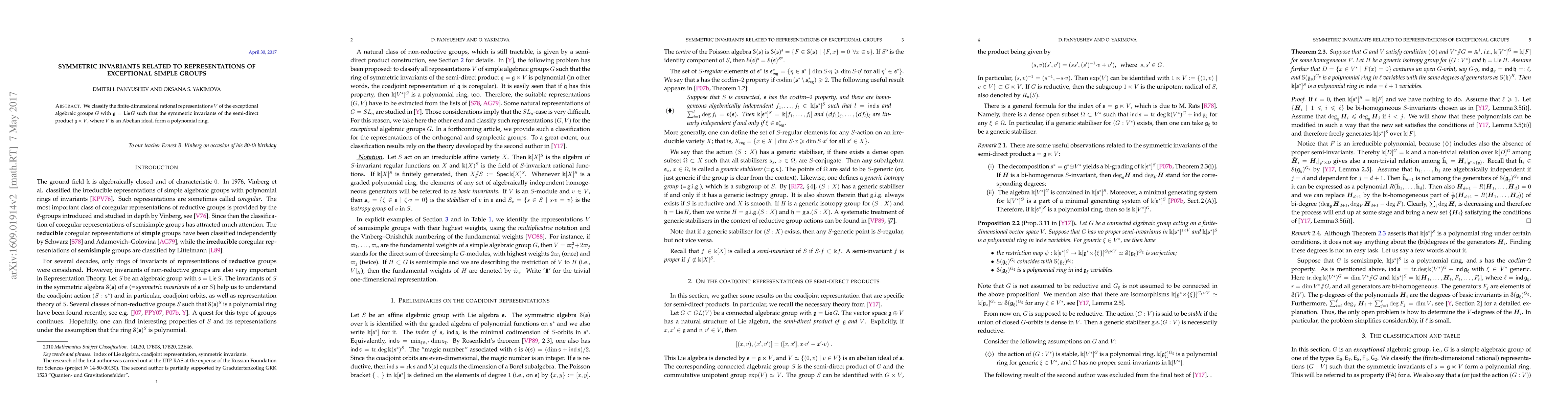This paper classifies finite-dimensional rational representations $V$ of exceptional algebraic groups $G$ where the symmetric invariants of the semi-direct product $\mathfrak g\ltimes V$ form a polynomial ring, focusing on the structure of $V$ as an Abelian ideal.