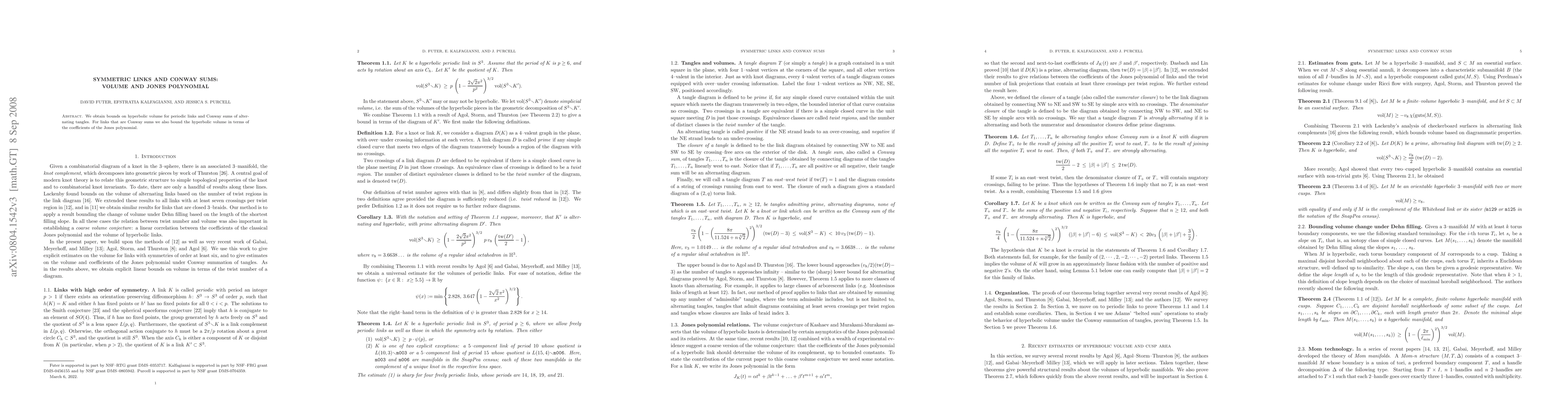This paper establishes volume bounds for hyperbolic periodic links and Conway sums of alternating tangles, and relates the hyperbolic volume of Conway sums to the coefficients of their Jones polynomials.