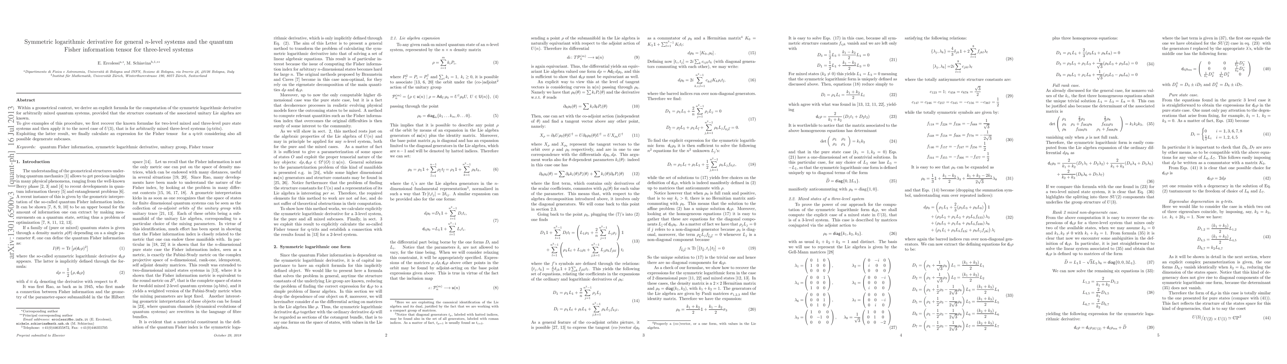 This paper derives an explicit formula for the symmetric logarithmic derivative for mixed quantum systems, applying it to two-level and three-level systems. It also calculates the quantum Fisher information tensor for arbitrarily mixed three-level systems, including all degenerate subcases.
