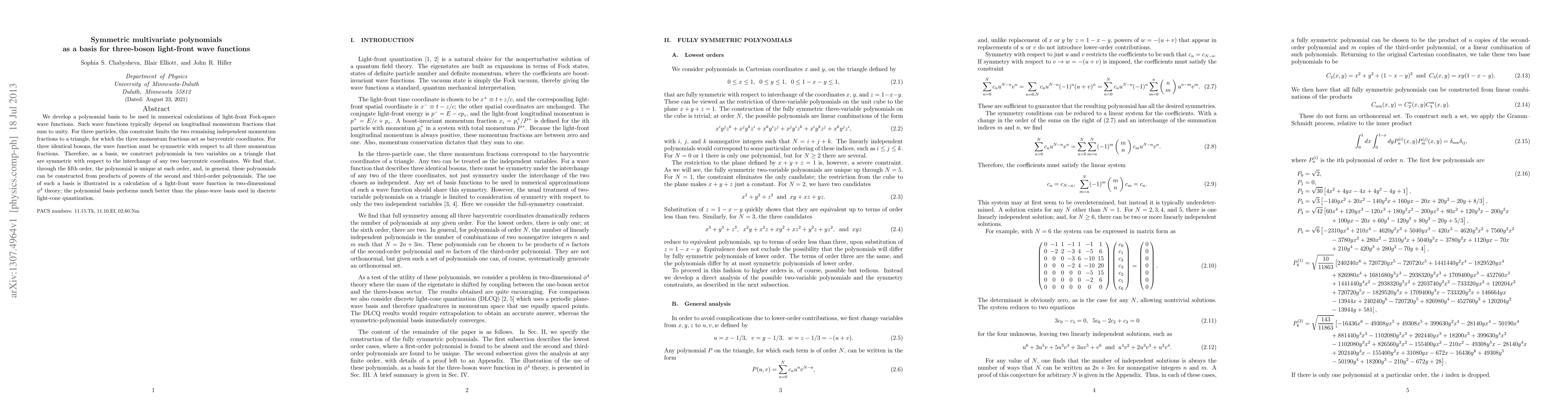 We develop a polynomial basis to be used in numerical calculations of light-front Fock-space wave functions. Such wave functions typically depend on longitudinal momentum fractions that sum to unity. For three particles, this constraint limits the two remaining independent momentum fractions to a triangle, for which the three momentum fractions act as barycentric coordinates. For three identical bosons, the wave function must be symmetric with respect to all three momentum fractions. Therefore, as a basis, we construct polynomials in two variables on a triangle that are symmetric with respect to the interchange of any two barycentric coordinates. We find that, through the fifth order, the polynomial is unique at each order, and, in general, these polynomials can be constructed from products of powers of the second and third-order polynomials. The use of such a basis is illustrated in a calculation of a light-front wave function in two-dimensional phi^4 theory; the polynomial basis performs much better than the plane-wave basis used in discrete light-cone quantization.