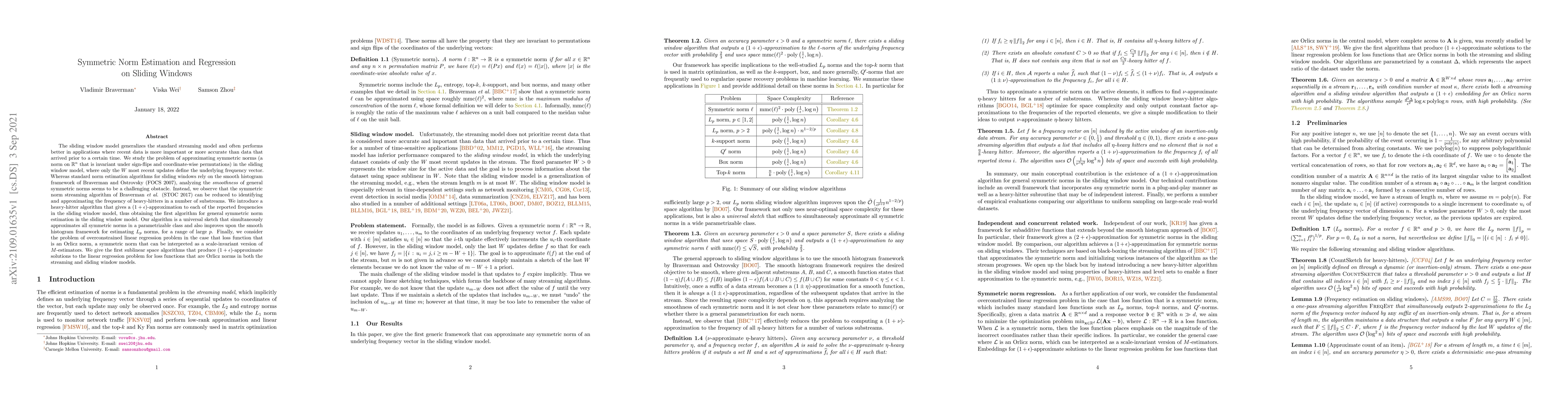 This paper presents a novel algorithm for estimating symmetric norms in the sliding window model, improving upon existing smooth histogram frameworks. It also introduces a universal sketch for approximating all symmetric norms in a parametrizable class and provides sublinear space algorithms for solving overconstrained linear regression problems with Orlicz norm loss functions in streaming and sliding window settings.