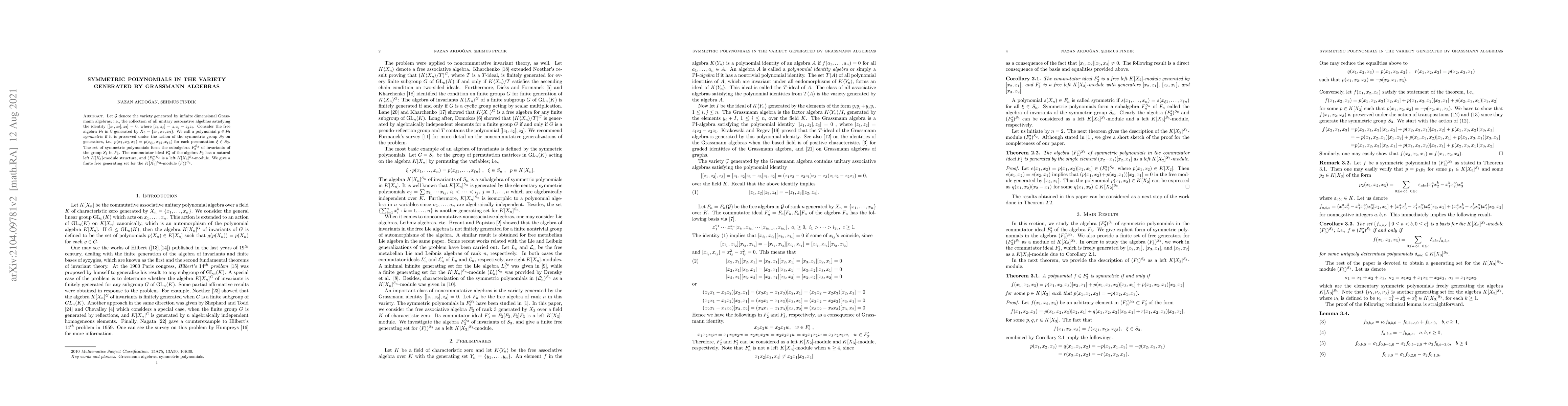 This research paper investigates symmetric polynomials in the variety generated by infinite dimensional Grassmann algebras, finding a free generating set for the module of invariant elements under the action of the symmetric group S3.