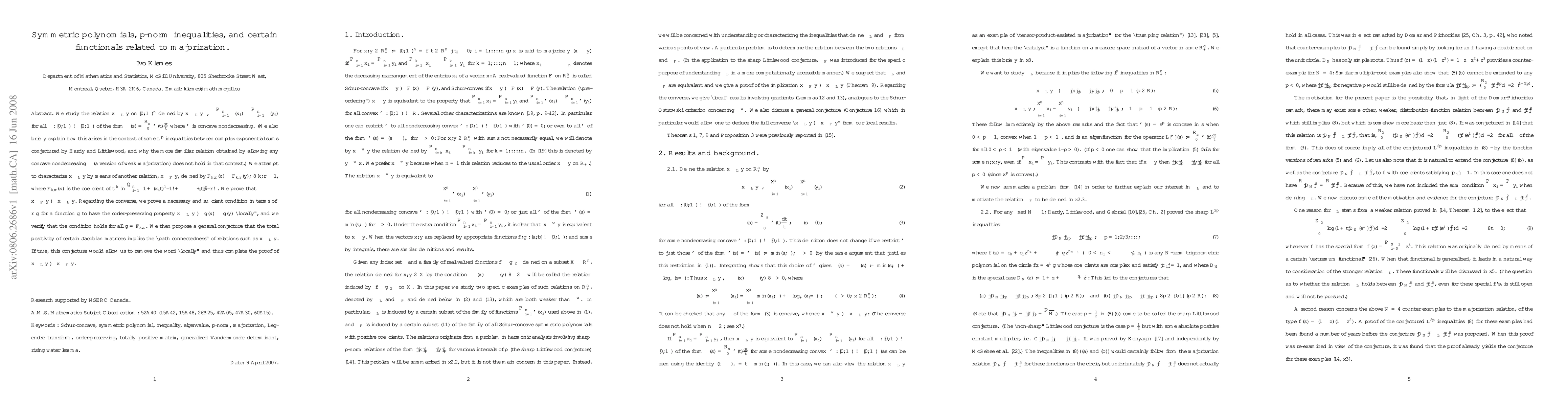 Summary: This paper explores a variant of the majorization relation through symmetric polynomials and their Schur-concavity, motivated by unresolved conjectures on sharp Lp inequalities for complex exponential sums. It highlights the limitations of the usual majorization relation in the context of these conjectures.