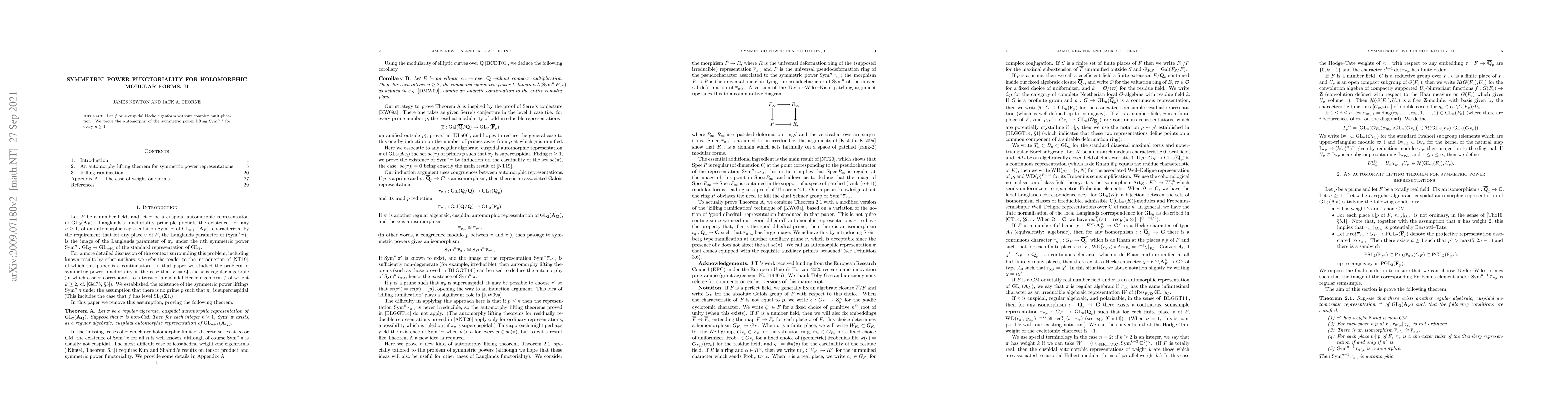 Summary: This paper proves the existence of symmetric power liftings for all holomorphic Hecke eigenforms, extending the results from the previous study on symmetric power functoriality for holomorphic modular forms. The findings contribute to the understanding of modular forms and their transformations.