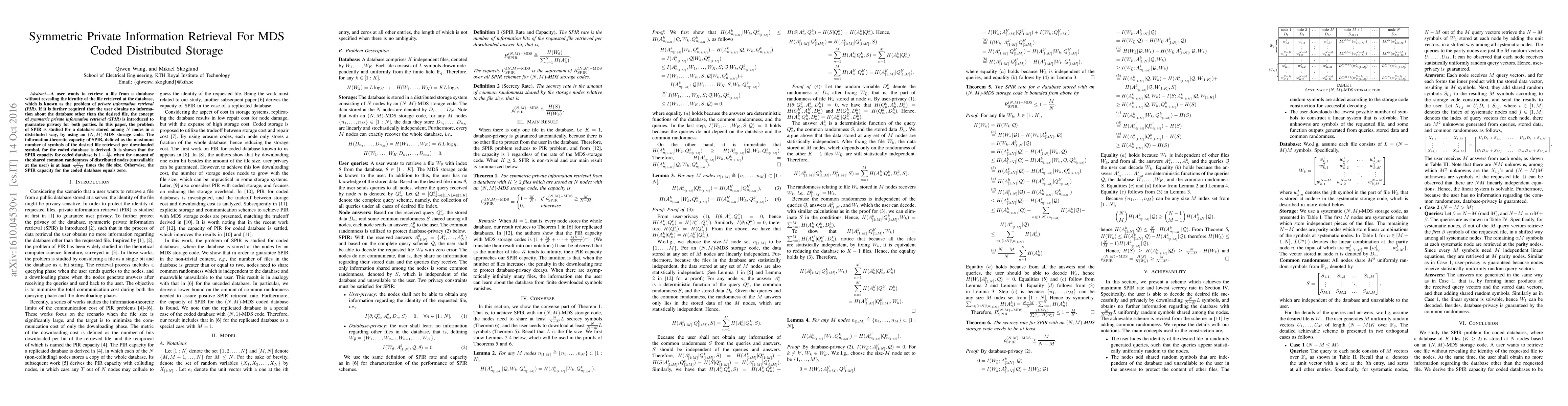 A user wants to retrieve a file from a database without revealing the identity of the file retrieved at the database, which is known as the problem of private information retrieval (PIR). If it is further required that the user obtains no information about the database other than the desired file, the concept of symmetric private information retrieval (SPIR) is introduced to guarantee privacy for both parties. In this paper, the problem of SPIR is studied for a database stored among $N$ nodes in a distributed way, by using an $(N,M)$-MDS storage code. The information-theoretic capacity of SPIR, defined as the maximum number of symbols of the desired file retrieved per downloaded symbol, for the coded database is derived. It is shown that the SPIR capacity for coded database is $1-\frac{M}{N}$, when the amount of the shared common randomness of distributed nodes (unavailable at the user) is at least $\frac{M}{N-M}$ times the file size. Otherwise, the SPIR capacity for the coded database equals zero.