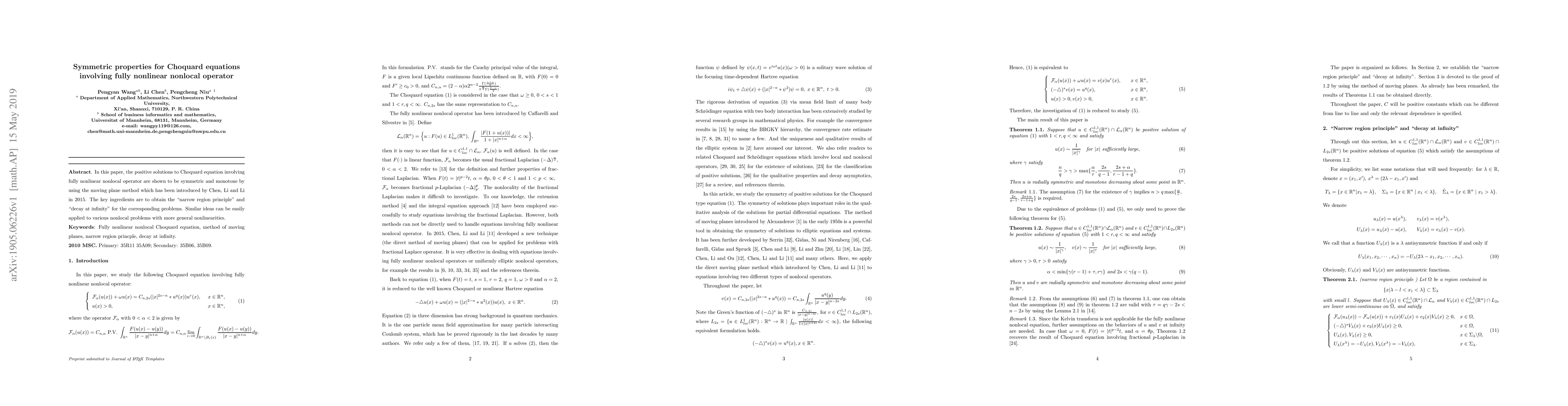 This paper demonstrates that positive solutions to Choquard equations with a fully nonlinear nonlocal operator are symmetric and monotone, utilizing the moving plane method. The "narrow region principle" and "decay at infinity" are key findings that extend to broader nonlocal problems.