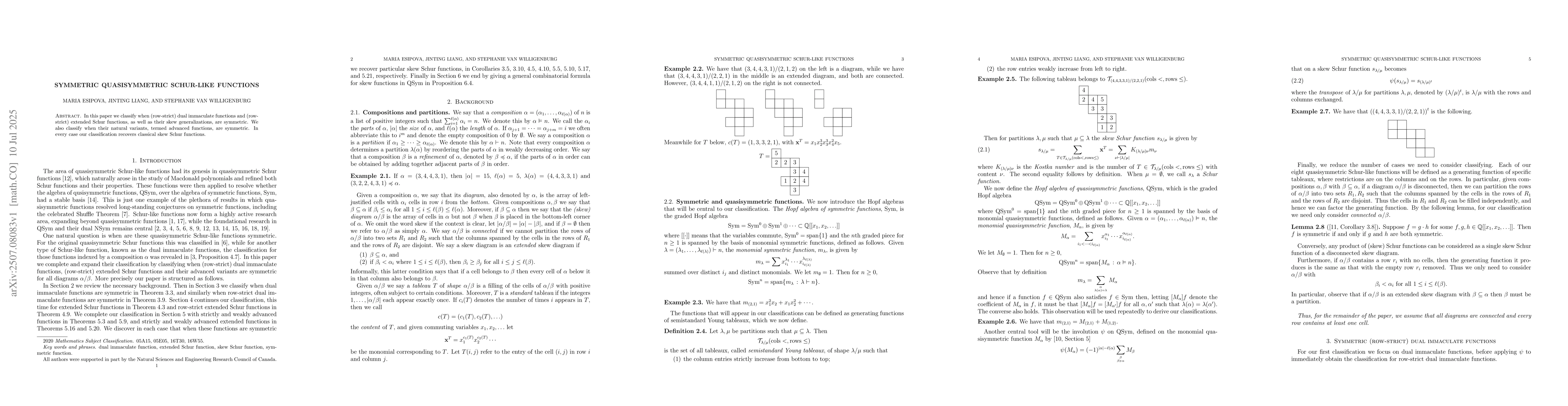 In this paper we classify when (row-strict) dual immaculate functions and (row-strict) extended Schur functions, as well as their skew generalizations, are symmetric. We also classify when their natural variants, termed advanced functions, are symmetric. In every case our classification recovers classical skew Schur functions.