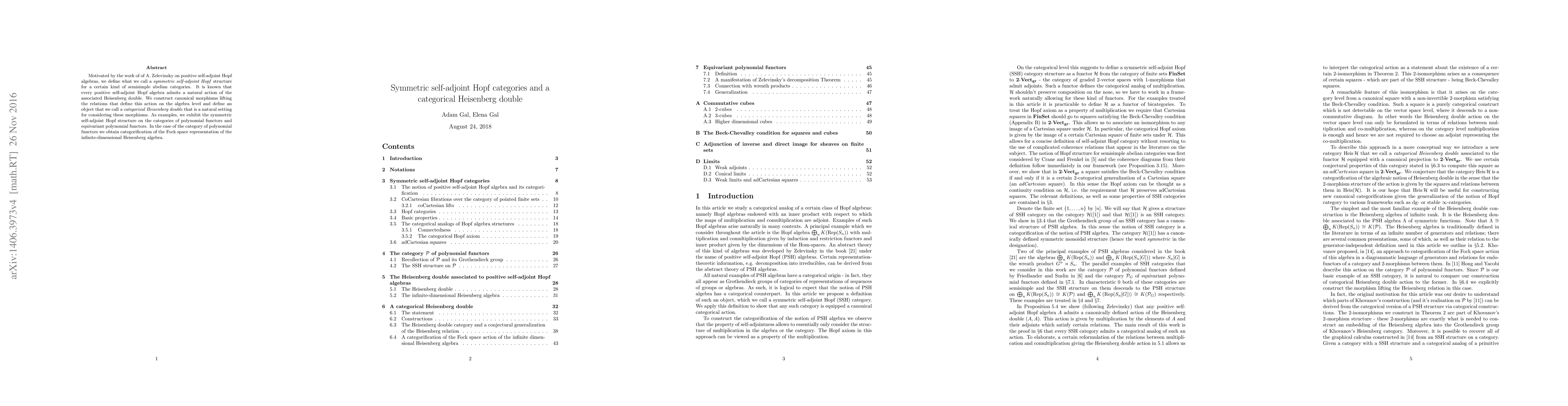 This paper introduces symmetric self-adjoint Hopf structures for semisimple abelian categories and constructs a categorical Heisenberg double, providing a framework for these structures. It demonstrates examples in polynomial functors, categorifying the Fock space representation of the infinite-dimensional Heisenberg algebra.
