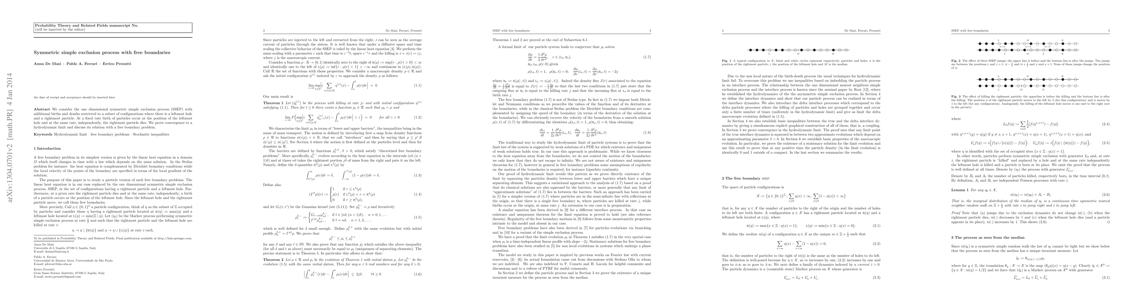 This paper studies the one-dimensional symmetric simple exclusion process with births and deaths at the boundaries, proving convergence to a hydrodynamic limit and linking it to a free boundary problem. The process involves particles being born at the leftmost hole and dying at the rightmost particle at fixed rates.