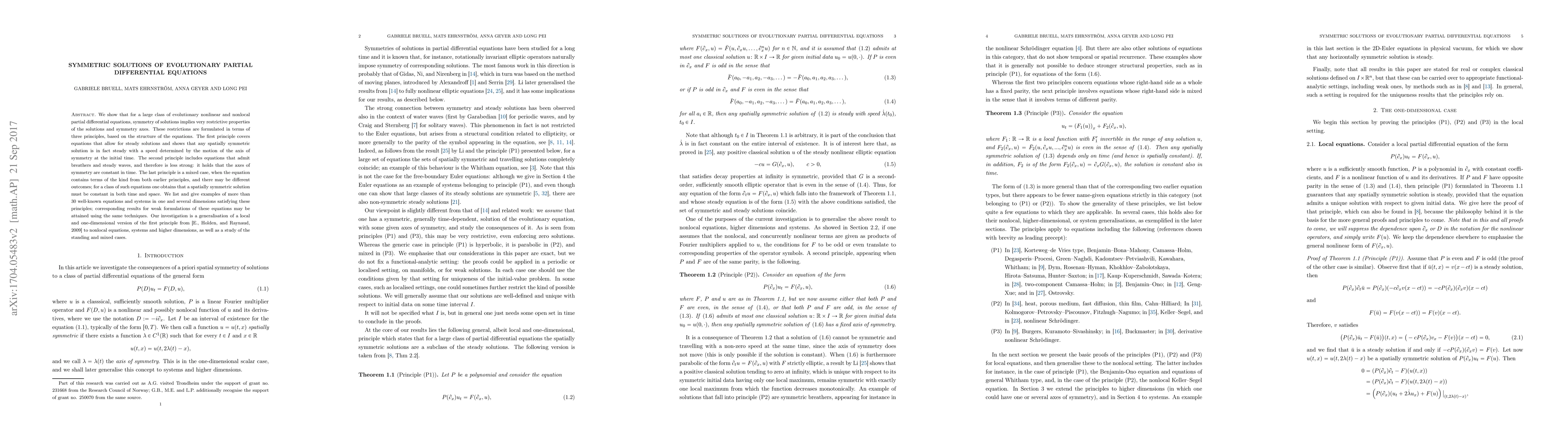 Symmetric solutions of evolutionary partial differential equations imply restrictive properties, such as steady states with speed determined by symmetry axes or constant axes in time, across a wide range of nonlinear and nonlocal equations.