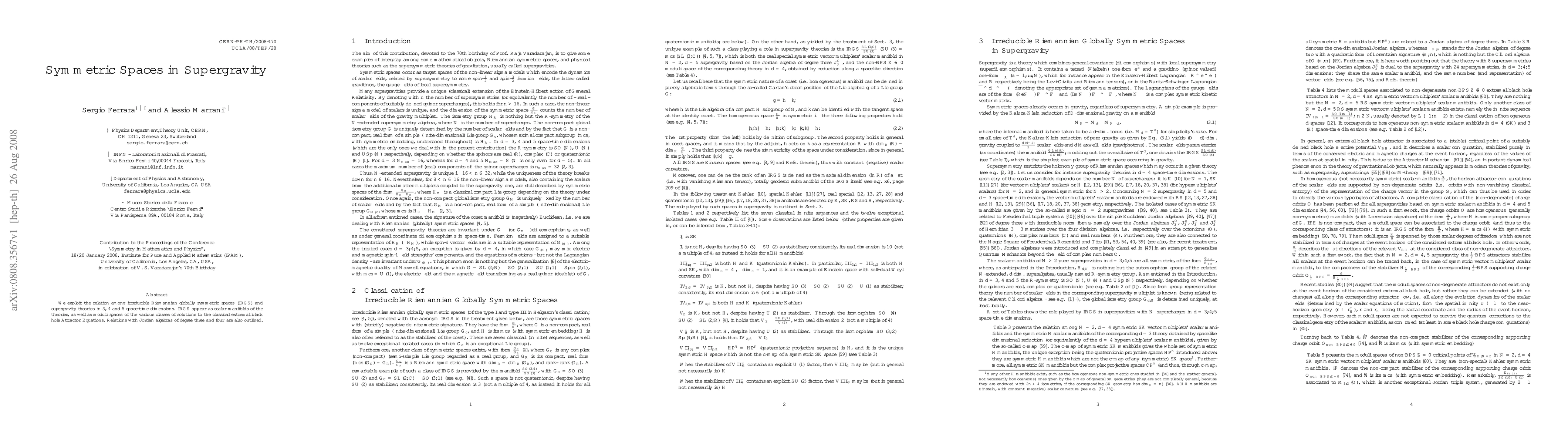 Researchers explore connections between supergravity theories and globally symmetric spaces in 3-5 dimensions, finding links to Jordan algebras and moduli spaces of black hole solutions.