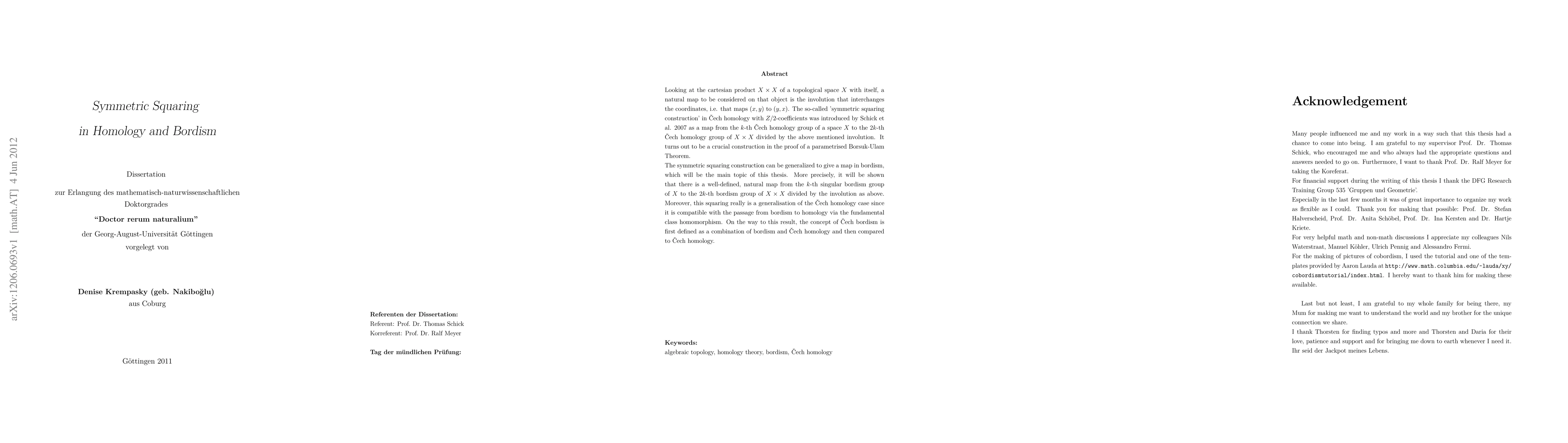 Researchers generalize a mathematical construction called symmetric squaring to bordism, creating a natural map between the k-th singular bordism group of a space X and the 2k-th bordism group of its product with itself.