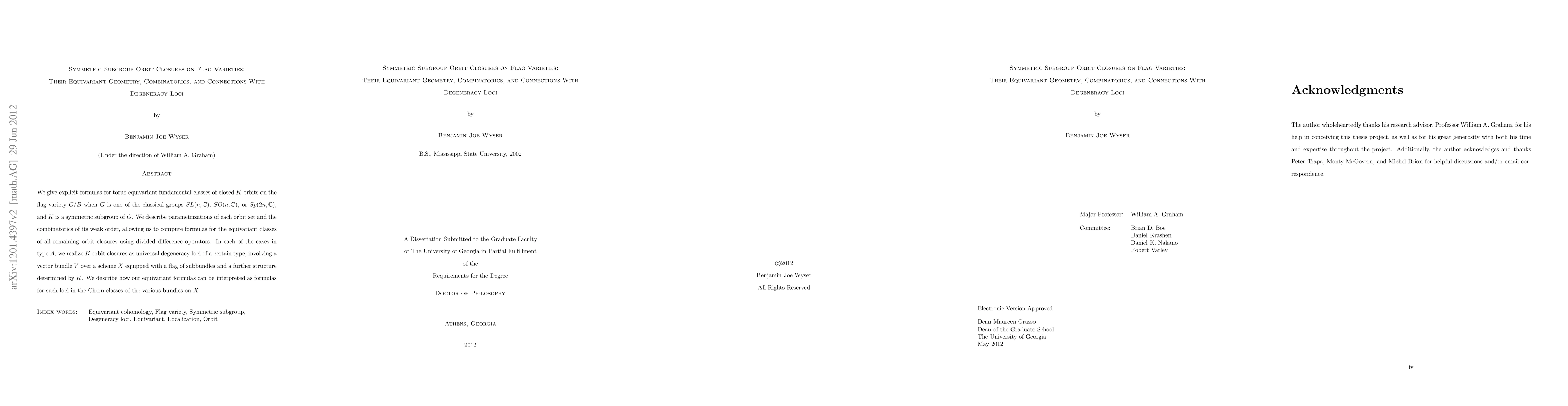 We give explicit formulas for torus-equivariant fundamental classes of closed $K$-orbits on the flag variety $G/B$ when $G$ is one of the classical groups $SL(n,\C)$, $SO(n,\C)$, or $Sp(2n,\C)$, and $K$ is a symmetric subgroup of $G$. We describe parametrizations of each orbit set and the combinatorics of its weak order, allowing us to compute formulas for the equivariant classes of all remaining orbit closures using divided difference operators. In each of the cases in type A, we realize the $K$-orbit closures as universal degeneracy loci of a certain type, involving a vector bundle $V$ over a scheme $X$ equipped with a flag of subbundles and a further structure determined by $K$. We describe how our equivariant formulas can be interpreted as formulas for such loci in the Chern classes of the various bundles on $X$.