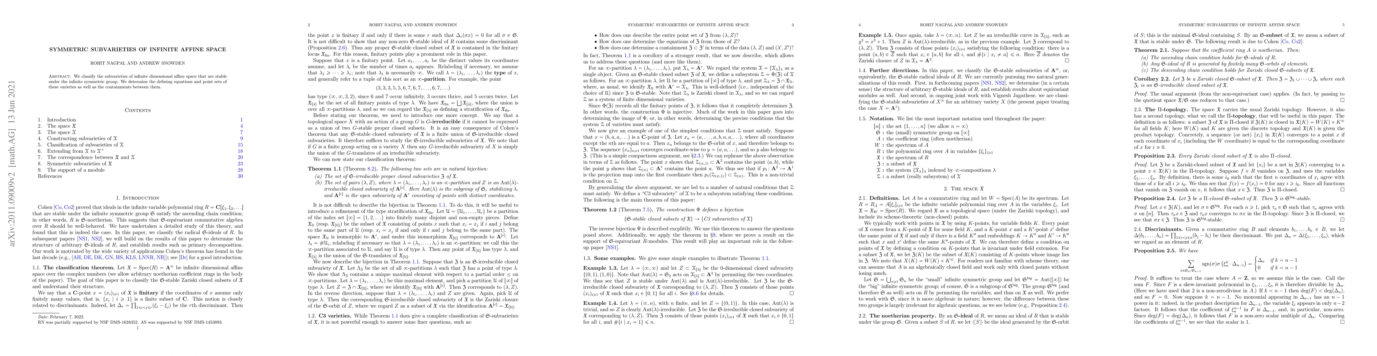 We classify the subvarieties of infinite dimensional affine space that are stable under the infinite symmetric group. We determine the defining equations and point sets of these varieties as well as the containments between them.