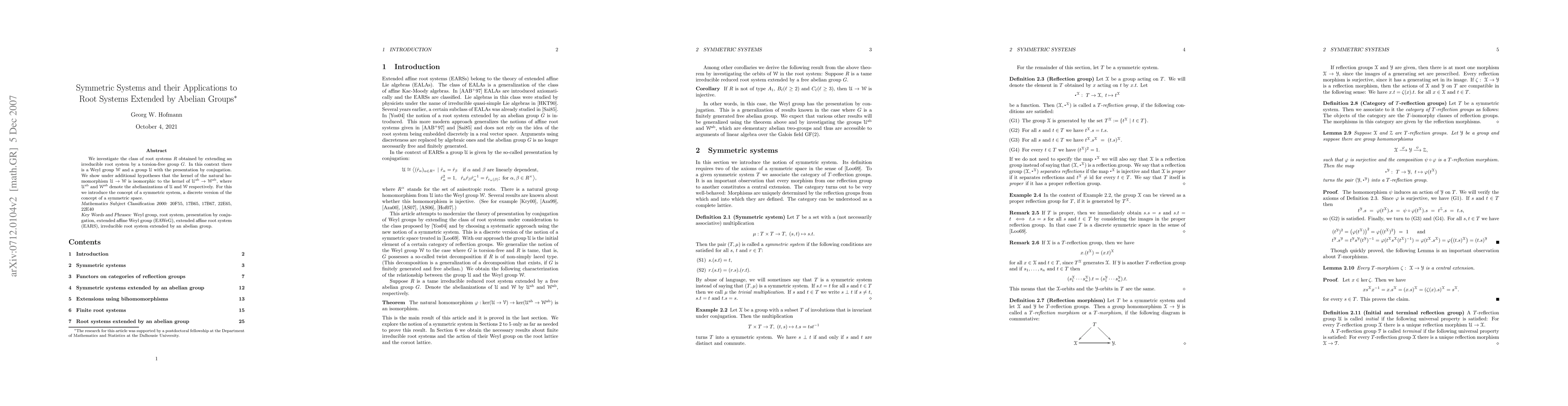 This paper explores how adding an abelian group to a root system creates a symmetric system, which shares certain properties with symmetric spaces. It establishes a connection between the Weyl group and the extended affine Weyl group.