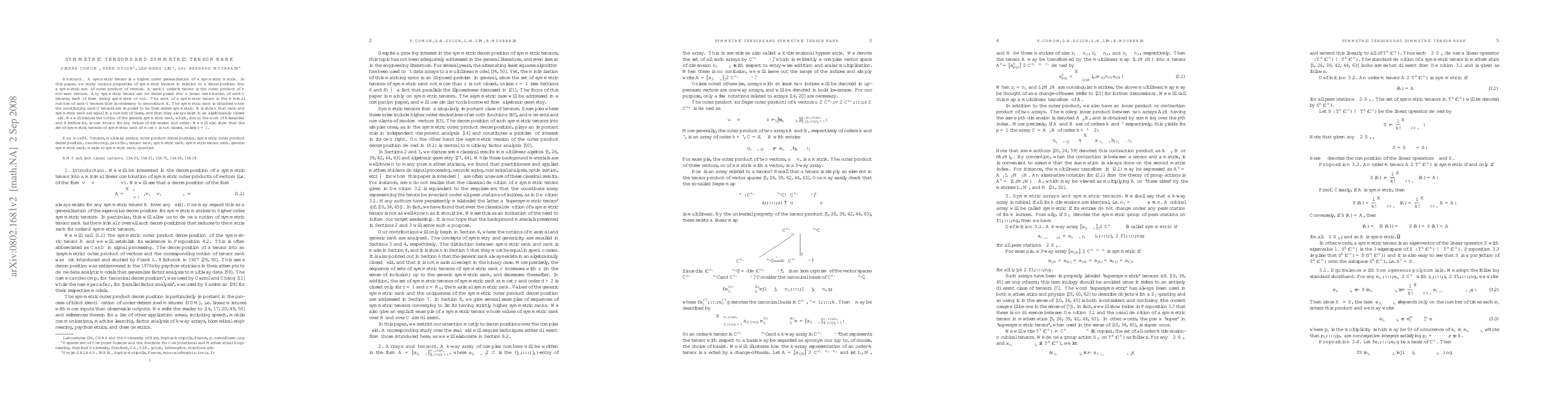 This paper explores the properties and decomposition of symmetric tensors, focusing on their rank and symmetric rank. It demonstrates that symmetric rank equals regular rank in certain cases and discusses the generic symmetric rank for various dimensions and orders. It concludes that the set of symmetric tensors with symmetric rank at most r is not closed unless r equals 1.