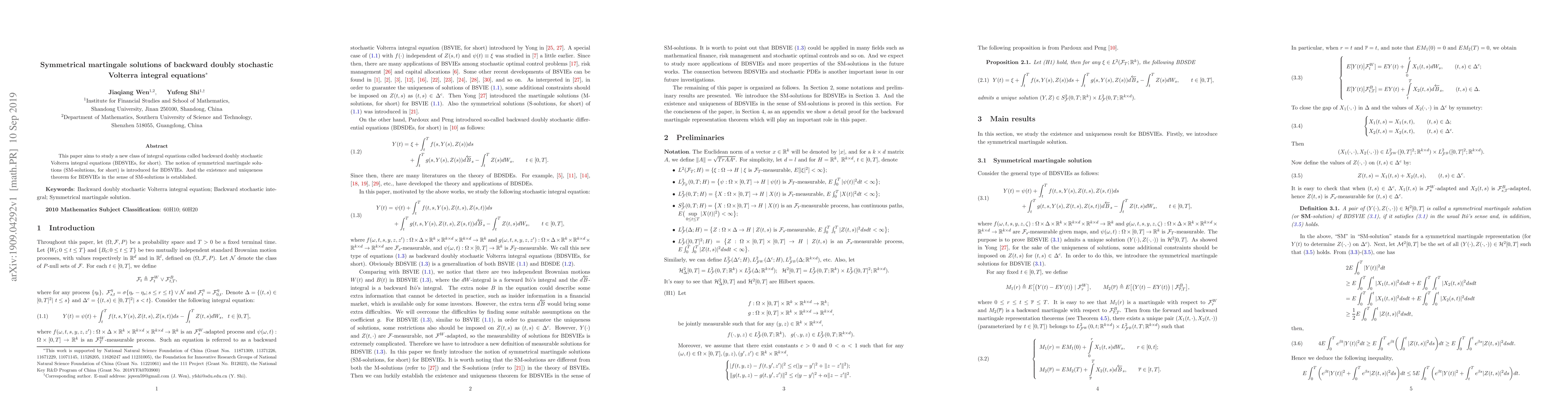 This paper introduces symmetrical martingale solutions (SM-solutions) for backward doubly stochastic Volterra integral equations (BDSVIEs) and establishes an existence and uniqueness theorem for these solutions.