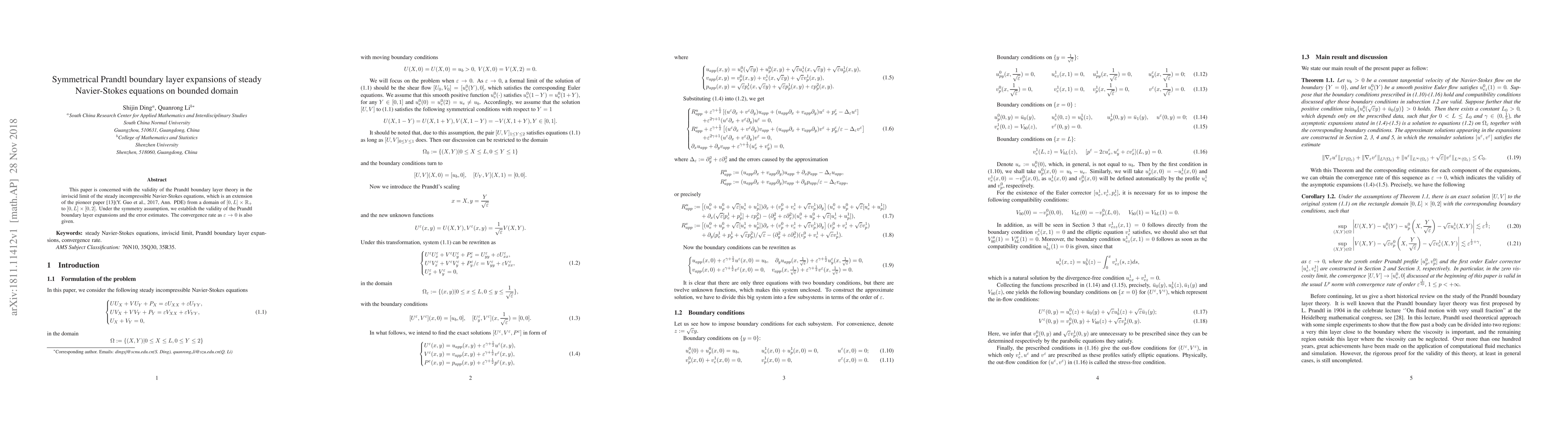 This paper extends the Prandtl boundary layer theory to a bounded domain under symmetry assumptions, proving its validity in the inviscid limit of the steady incompressible Navier-Stokes equations and providing error estimates and convergence rates as viscosity approaches zero.