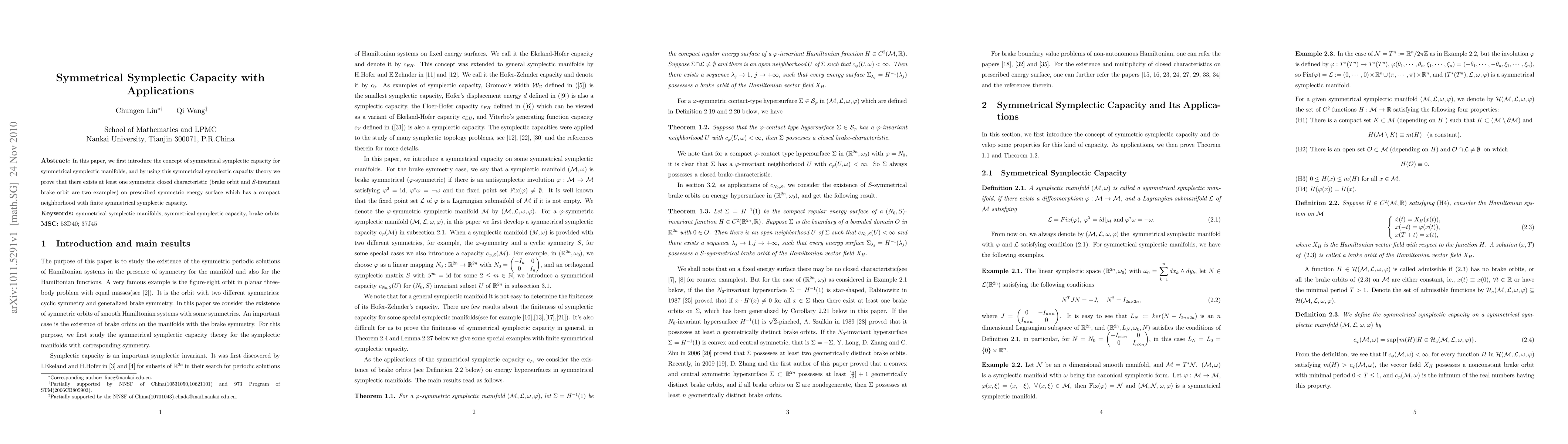 This paper introduces symmetrical symplectic capacity for symmetrical symplectic manifolds and demonstrates that there exists at least one symmetric closed characteristic on a prescribed symmetric energy surface, with a compact neighborhood possessing finite symmetrical symplectic capacity.