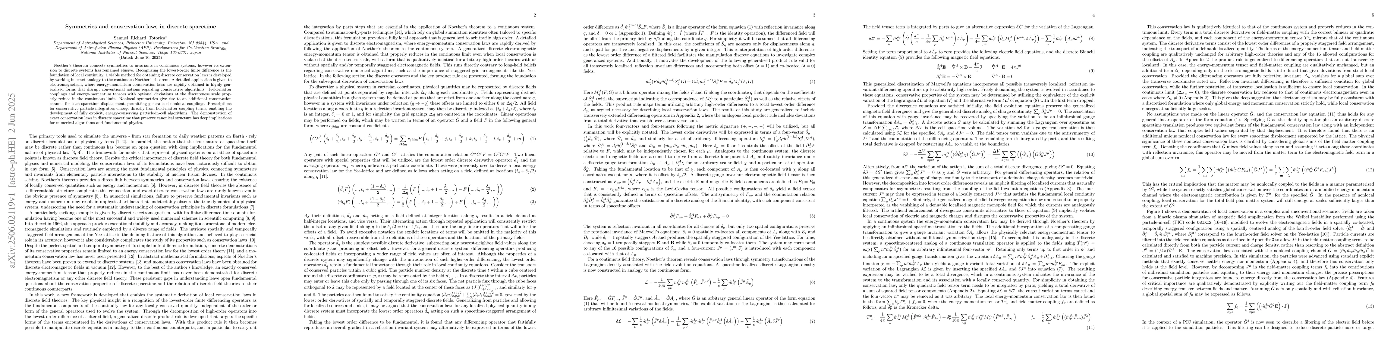 Researchers developed a method to derive discrete conservation laws in spacetime using Noether's theorem, enabling new energy-conserving particle-in-cell algorithms with generalized forms of electromagnetism conservation laws.