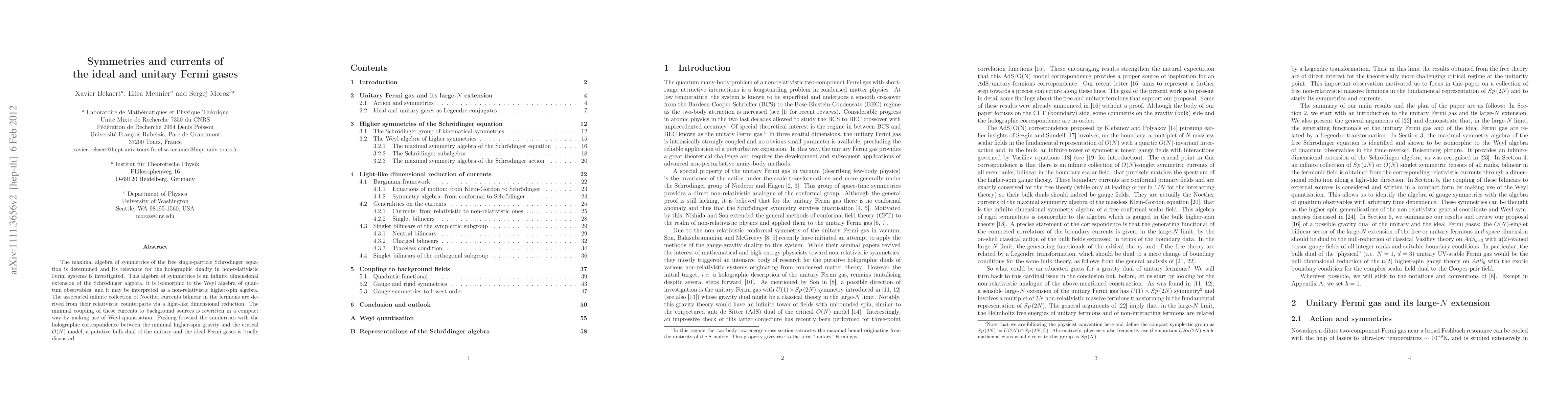 The maximal algebra of symmetries of the free single-particle Schroedinger equation is determined and its relevance for the holographic duality in non-relativistic Fermi systems is investigated. This algebra of symmetries is an infinite dimensional extension of the Schroedinger algebra, it is isomorphic to the Weyl algebra of quantum observables, and it may be interpreted as a non-relativistic higher-spin algebra. The associated infinite collection of Noether currents bilinear in the fermions are derived from their relativistic counterparts via a light-like dimensional reduction. The minimal coupling of these currents to background sources is rewritten in a compact way by making use of Weyl quantisation. Pushing forward the similarities with the holographic correspondence between the minimal higher-spin gravity and the critical O(N) model, a putative bulk dual of the unitary and the ideal Fermi gases is discussed.