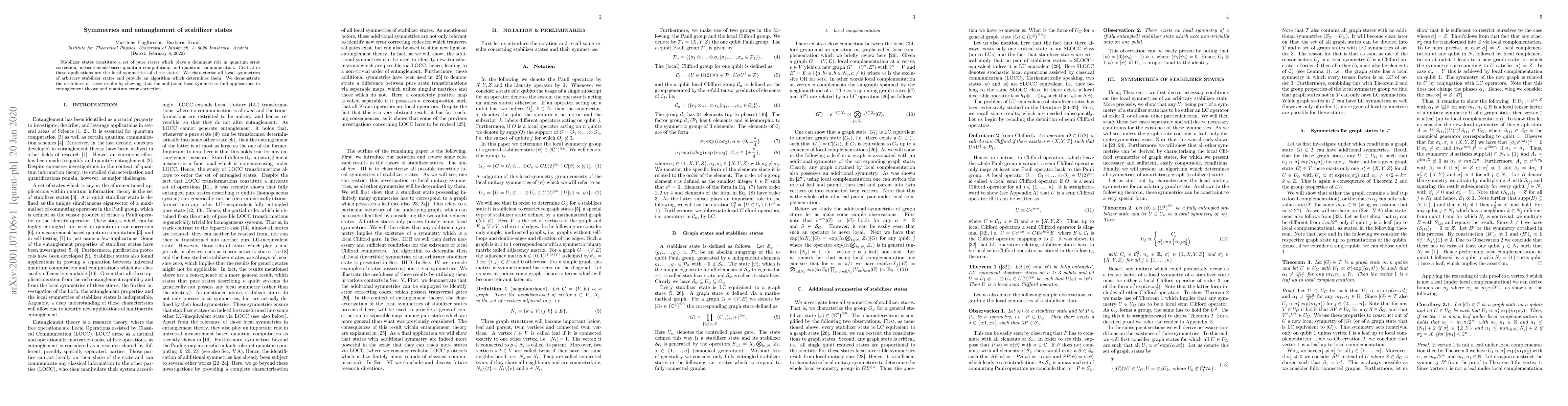 This paper characterizes the local symmetries of stabilizer states, crucial for quantum error correction and computation, and provides an algorithm to determine these symmetries. It also shows how these symmetries enhance entanglement theory and improve quantum error correction.