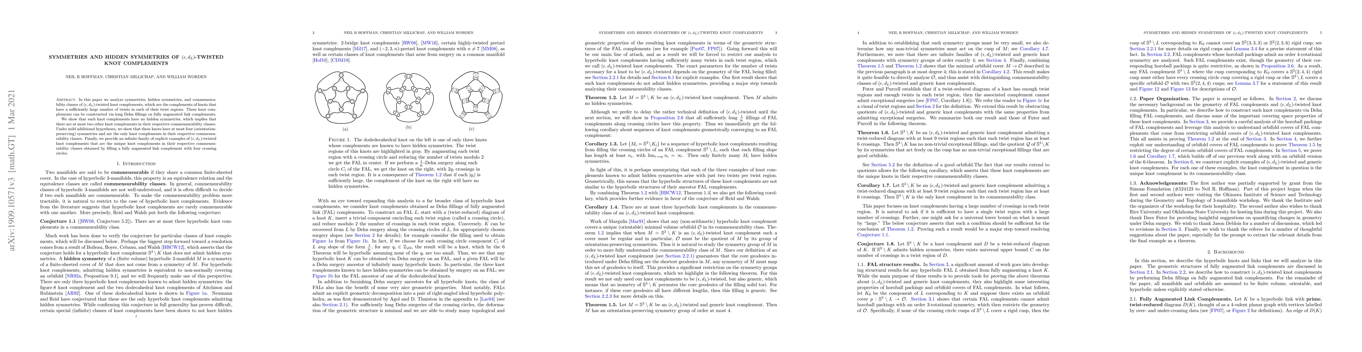 This paper examines symmetries and hidden symmetries of $(\epsilon, d_L)$-twisted knot complements, demonstrating that these have no hidden symmetries and at most two other complements in their commensurability classes, with specific knots having at most four symmetries and being unique in their classes. It also presents an infinite family of such unique knot complements.