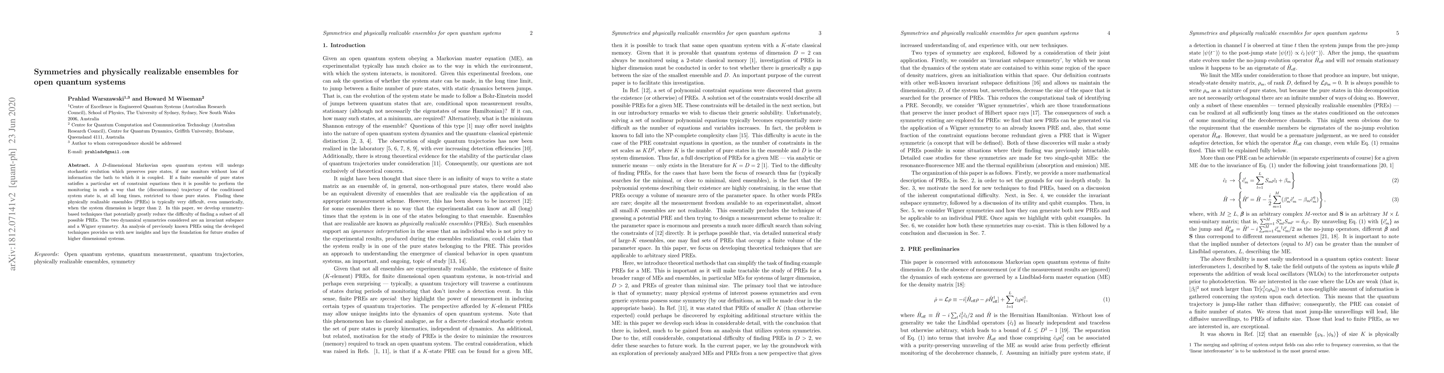 This paper develops symmetry-based techniques to simplify the search for physically realizable ensembles (PREs) in open quantum systems, focusing on invariant subspaces and Wigner symmetries. The approach provides new insights into PREs, facilitating future studies on higher dimensional systems.