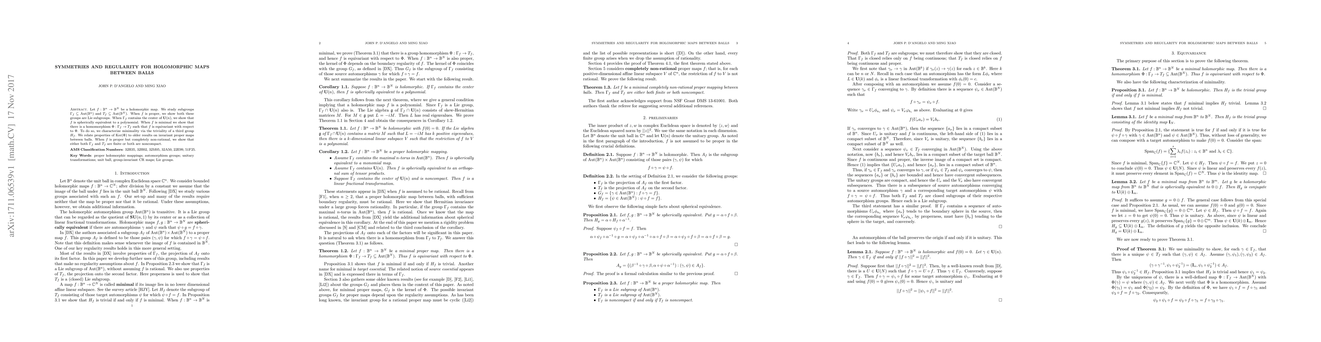 Let $f:{\mathbb B}^n \to {\mathbb B}^N$ be a holomorphic map. We study subgroups $\Gamma_f \subseteq {\rm Aut}({\mathbb B}^n)$ and $T_f \subseteq {\rm Aut}({\mathbb B}^N)$. When $f$ is proper, we show both these groups are Lie subgroups. When $\Gamma_f$ contains the center of ${\bf U}(n)$, we show that $f$ is spherically equivalent to a polynomial. When $f$ is minimal we show that there is a homomorphism $\Phi:\Gamma_f \to T_f$ such that $f$ is equivariant with respect to $\Phi$. To do so, we characterize minimality via the triviality of a third group $H_f$. We relate properties of ${\rm Ker}(\Phi)$ to older results on invariant proper maps between balls. When $f$ is proper but completely non-rational, we show that either both $\Gamma_f$ and $T_f$ are finite or both are noncompact.