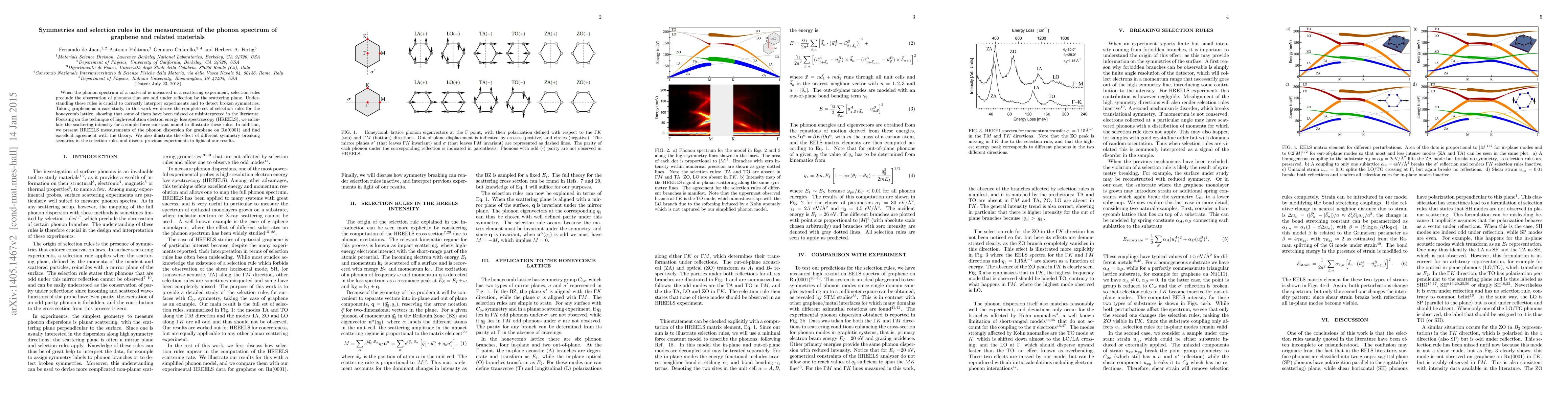 When the phonon spectrum of a material is measured in a scattering experiment, selection rules preclude the observation of phonons that are odd under reflection by the scattering plane. Understanding these rules is crucial to correctly interpret experiments and to detect broken symmetries. Taking graphene as a case study, in this work we derive the complete set of selection rules for the honeycomb lattice, showing that some of them have been missed or misinterpreted in the literature. Focusing on the technique of high-resolution electron energy loss spectroscopy (HREELS), we calculate the scattering intensity for a simple force constant model to illustrate these rules. In addition, we present HREELS measurements of the phonon dispersion for graphene on Ru(0001) and find excellent agreement with the theory. We also illustrate the effect of different symmetry breaking scenarios in the selection rules and discuss previous experiments in light of our results.