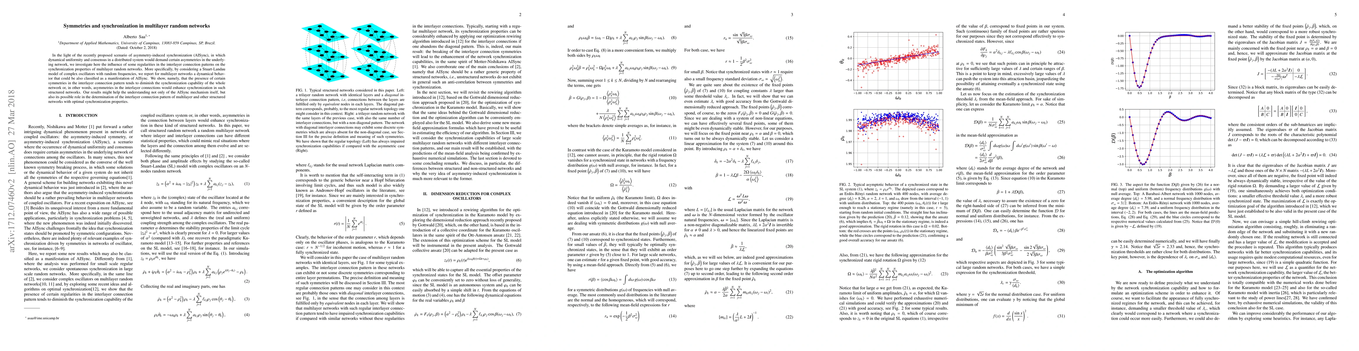 This paper explores how symmetries in interlayer connections affect synchronization in multilayer random networks, finding that asymmetries enhance synchronization, aligning with the asymmetry-induced synchronization (AISync) concept. The study uses a Stuart-Landau model to demonstrate that certain interlayer connection patterns can optimize synchronization in such networks.