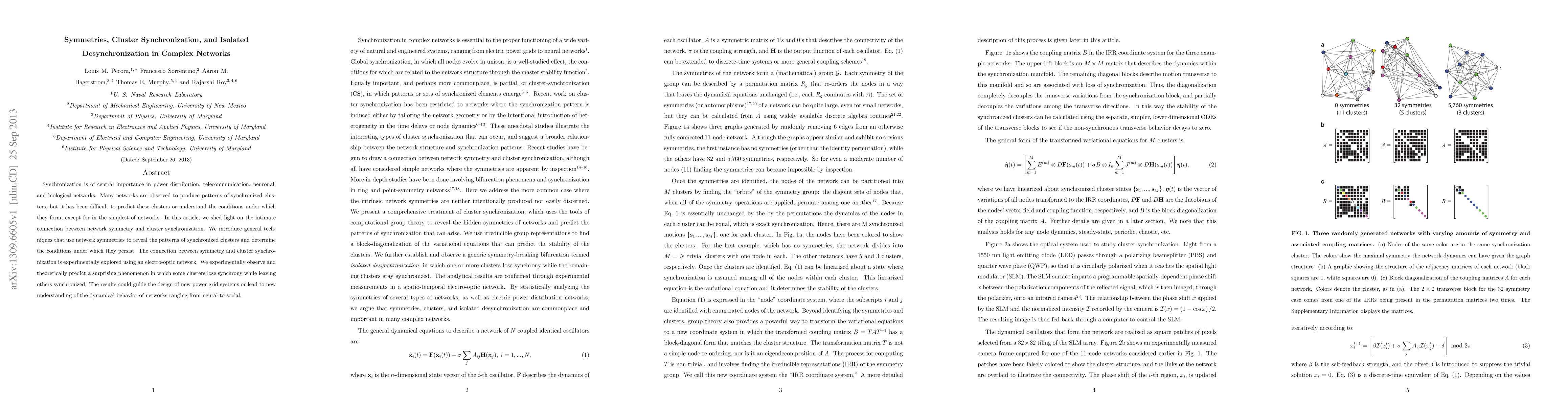 This paper explores the relationship between network symmetry and cluster synchronization in complex networks, introducing techniques to predict synchronized clusters. It reveals an unexpected phenomenon of isolated desynchronization, observed both theoretically and experimentally in an electro-optic network, which could inform the design of power grids and enhance understanding of various network dynamics.