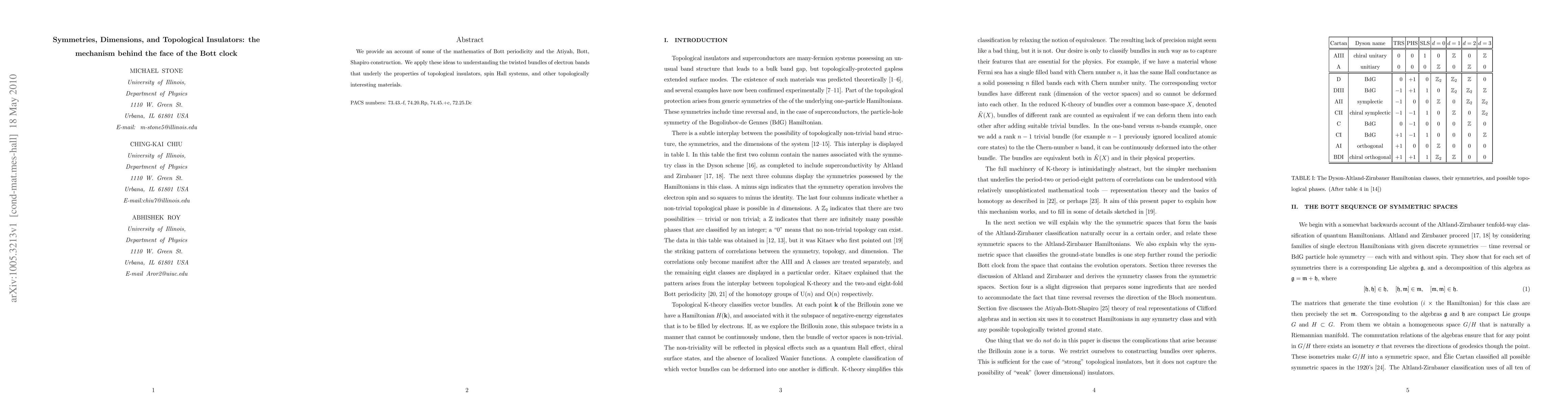 We provide an account of some of the mathematics of Bott periodicity and the Atiyah, Bott, Shapiro construction. We apply these ideas to understanding the twisted bundles of electron bands that underly the properties of topological insulators, spin Hall systems, and other topologically interesting materials.